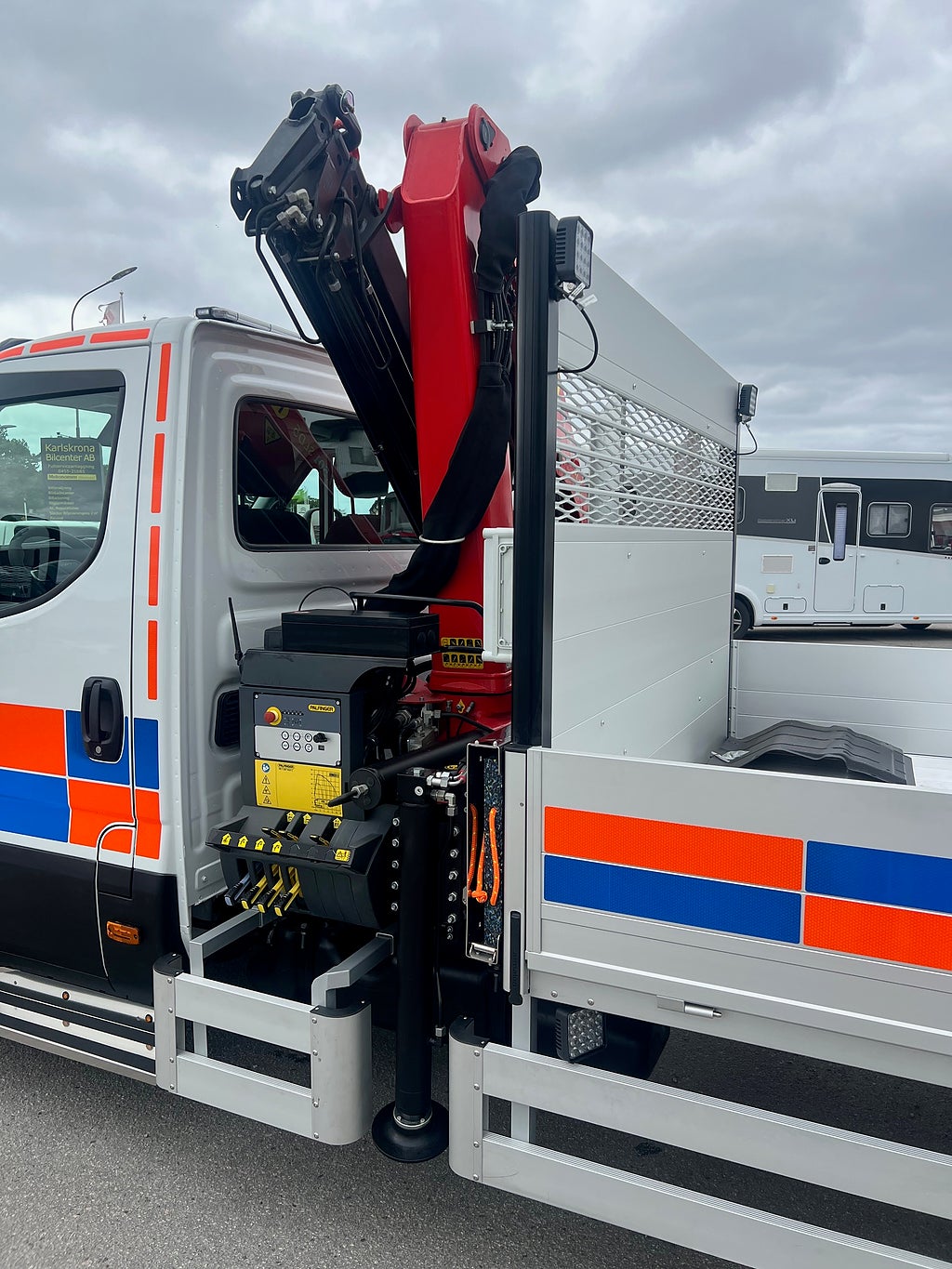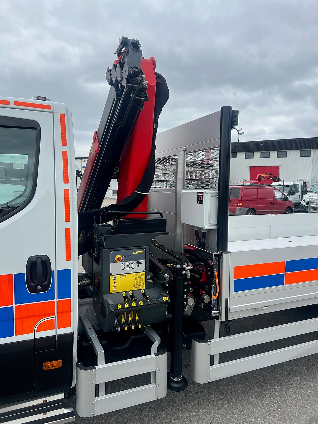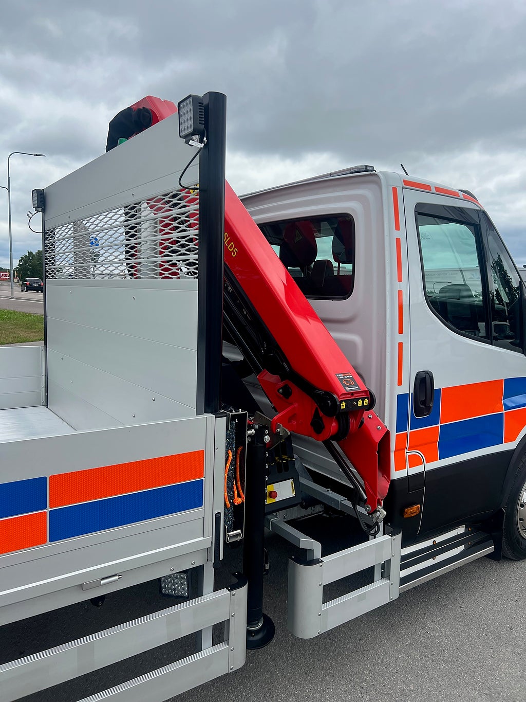 Bältesvarning, El. inställbara backspeglar med värme, Filvarningssystem med aktiv styr assist, AEBS + City Brake, Värme i framruta (Vid torkarblad), Dimljus med kurvljus, Höjdjusterbar fjädrande och eluppvärmd förarstol med minnesskum, Webasto motorvärmare med tidur, 4 väg justering av ratt, Filvarningssystem med aktiv styr assist, Passagerarsoffa med nedfällbart bord, Stoppat nackstöd i textstil, Adaptiv farthållare med kö assist, Komfortdisplay med serviceinformation, Öppet förvaringsfack med USB laddning, Differentialspärr, Förvaringshylla ovanför vindrutan, HVO anpassning, FULL LED stålkastare, HI-CONNECT + NAVIGATION, Alexa, Pack Business Premium, Pack Hi-Drive, Elektrisk Handbroms, Luftfjädring bak, Sidvinds assistent, TPMS Däcktrycksövervakning, Grill med kromade detaljer, Aluminiumgolv på flaket, Flakförlängning bakåt, Godstöttor, Rostfria Navkapslar, Rostfria Sidofotsteg med pos-ljus, 6 Stycken LED Arbetsbelysning, 2 Stycken blixtljus fram & 2 stycken bakåt samt 3 stycken blixtljus per sida, LED Blixtljusramp på taket, LED Extraljus ramp, 2 Stycken Rostfria verktygslådor med skåpsbelysning, Stödbensplattor, Stor strölåda under flaket, Palfinger PK7.501 SLD Kran 4 hydrauliska utskjut till 11.2 m, Hydraulisk utkörning av stödbenen till 4.95 m, Den nya kranen med en lägre kranpelare så bilen blir ca 15 cm lägre än en vanlig,Aluminiumflak med invändiga mått Bredd: 220 Cm Längd: 500 Cm, Max släpvagnsvikt: 3300 Kg, Årsskatt: 2420 Kr, Tillåten Lastvikt: 2795 Kg, En riktigt fin och genomtänkt byggnation, Kranbil Brädgårds bil Fastflak kran & flak Fast flak Brädgårdsbil, Axelavstånd: 4750 mm, Totalvikt: 7200 Kg, För mer info ring säljare Andreas 0705-494044