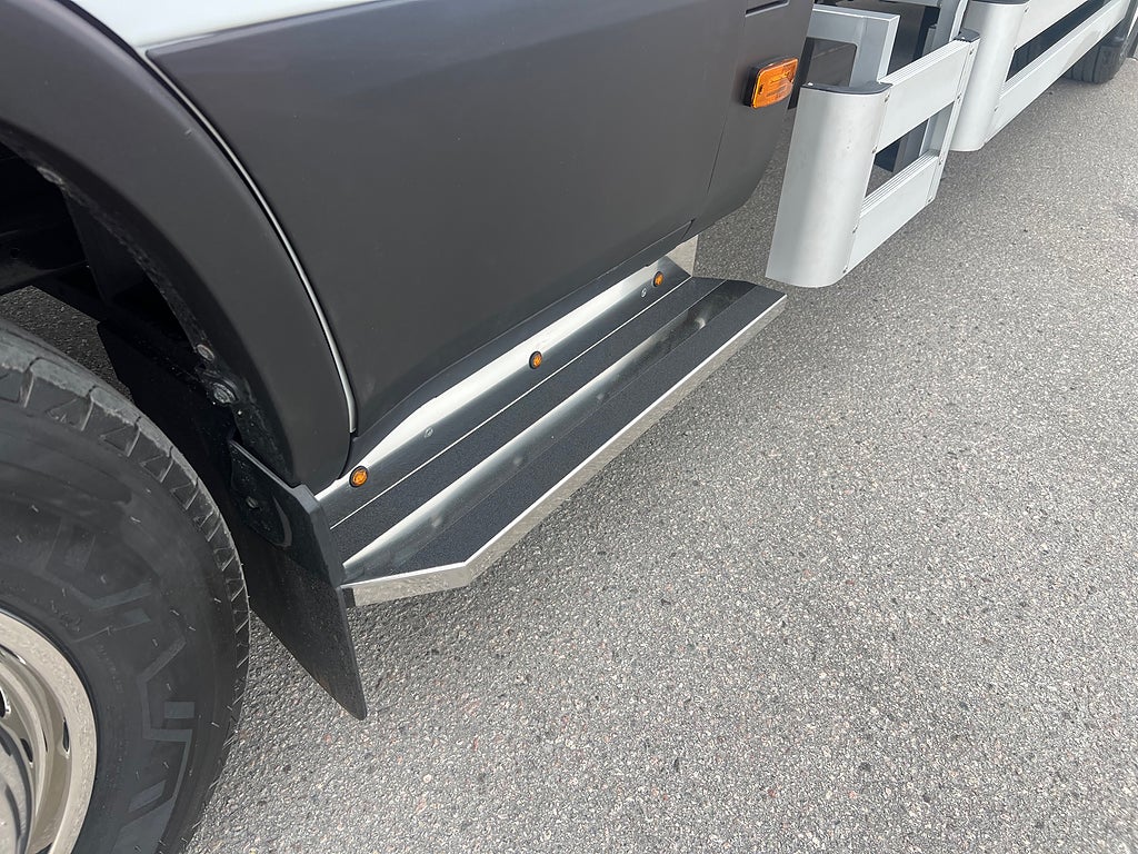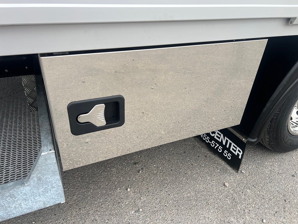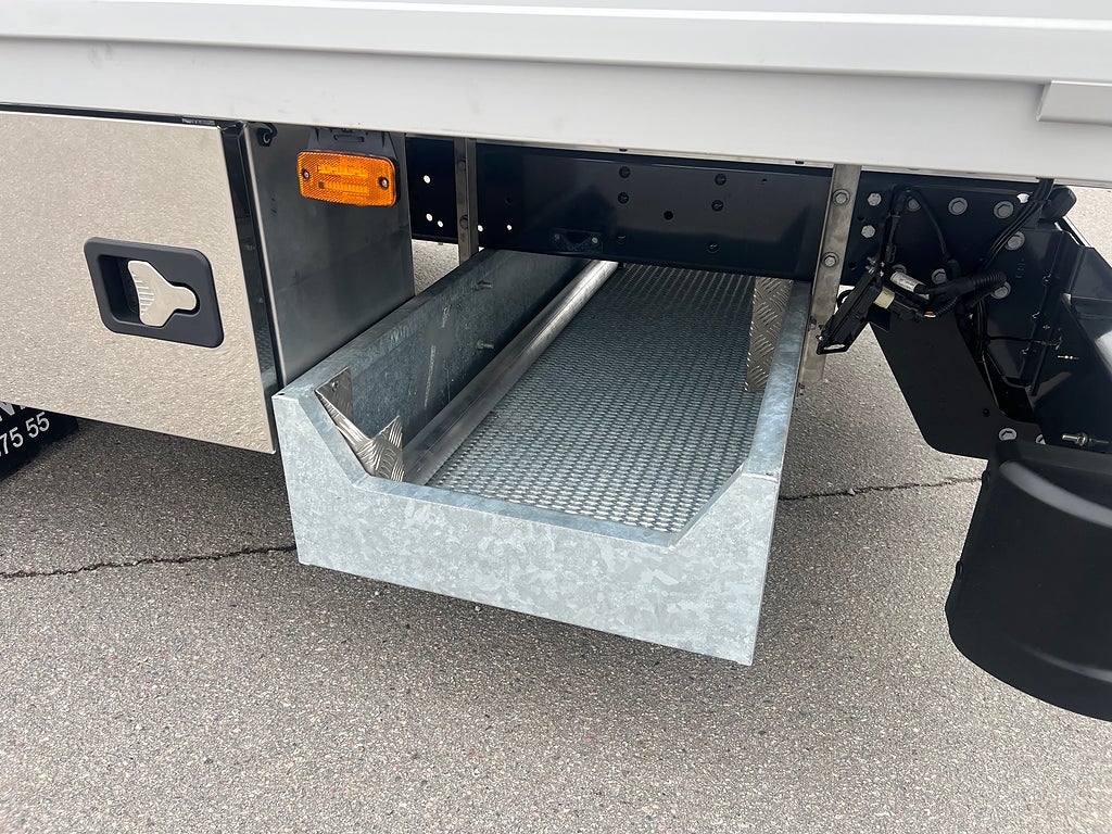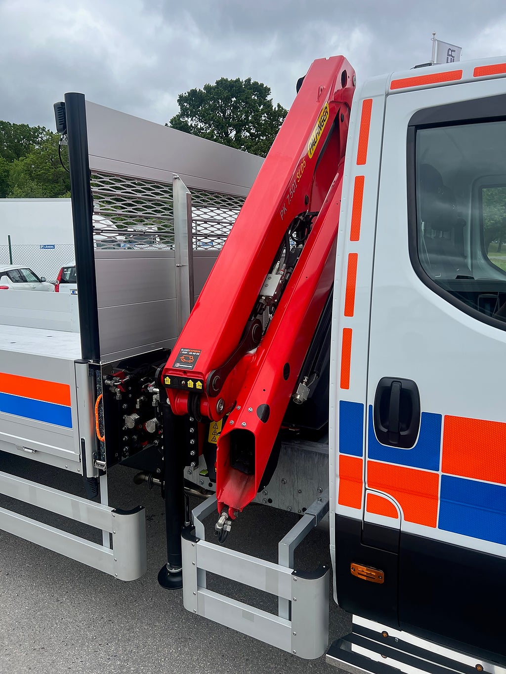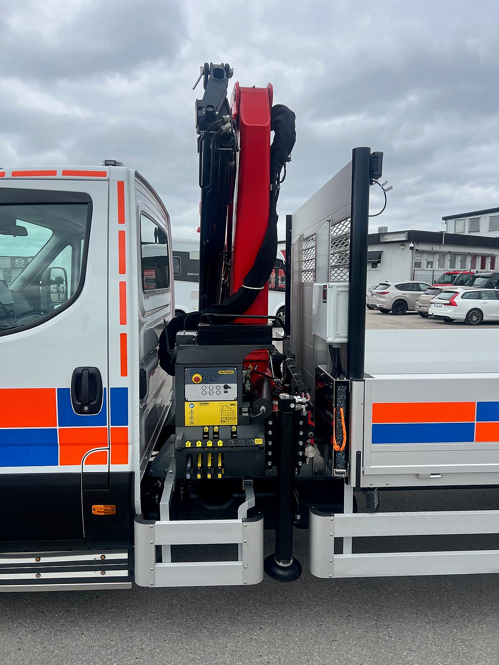 Bältesvarning, El. inställbara backspeglar med värme, Filvarningssystem med aktiv styr assist, AEBS + City Brake, Värme i framruta (Vid torkarblad), Dimljus med kurvljus, Höjdjusterbar fjädrande och eluppvärmd förarstol med minnesskum, Webasto motorvärmare med tidur, 4 väg justering av ratt, Filvarningssystem med aktiv styr assist, Passagerarsoffa med nedfällbart bord, Stoppat nackstöd i textstil, Adaptiv farthållare med kö assist, Komfortdisplay med serviceinformation, Öppet förvaringsfack med USB laddning, Differentialspärr, Förvaringshylla ovanför vindrutan, HVO anpassning, FULL LED stålkastare, HI-CONNECT + NAVIGATION, Alexa, Pack Business Premium, Pack Hi-Drive, Elektrisk Handbroms, Luftfjädring bak, Sidvinds assistent, TPMS Däcktrycksövervakning, Grill med kromade detaljer, Aluminiumgolv på flaket, Flakförlängning bakåt, Godstöttor, Rostfria Navkapslar, Rostfria Sidofotsteg med pos-ljus, 6 Stycken LED Arbetsbelysning, 2 Stycken blixtljus fram & 2 stycken bakåt samt 3 stycken blixtljus per sida, LED Blixtljusramp på taket, LED Extraljus ramp, 2 Stycken Rostfria verktygslådor med skåpsbelysning, Stödbensplattor, Stor strölåda under flaket, Palfinger PK7.501 SLD Kran 4 hydrauliska utskjut till 11.2 m, Hydraulisk utkörning av stödbenen till 4.95 m, Den nya kranen med en lägre kranpelare så bilen blir ca 15 cm lägre än en vanlig,Aluminiumflak med invändiga mått Bredd: 220 Cm Längd: 500 Cm, Max släpvagnsvikt: 3300 Kg, Årsskatt: 2420 Kr, Tillåten Lastvikt: 2795 Kg, En riktigt fin och genomtänkt byggnation, Kranbil Brädgårds bil Fastflak kran & flak Fast flak Brädgårdsbil, Axelavstånd: 4750 mm, Totalvikt: 7200 Kg, För mer info ring säljare Andreas 0705-494044