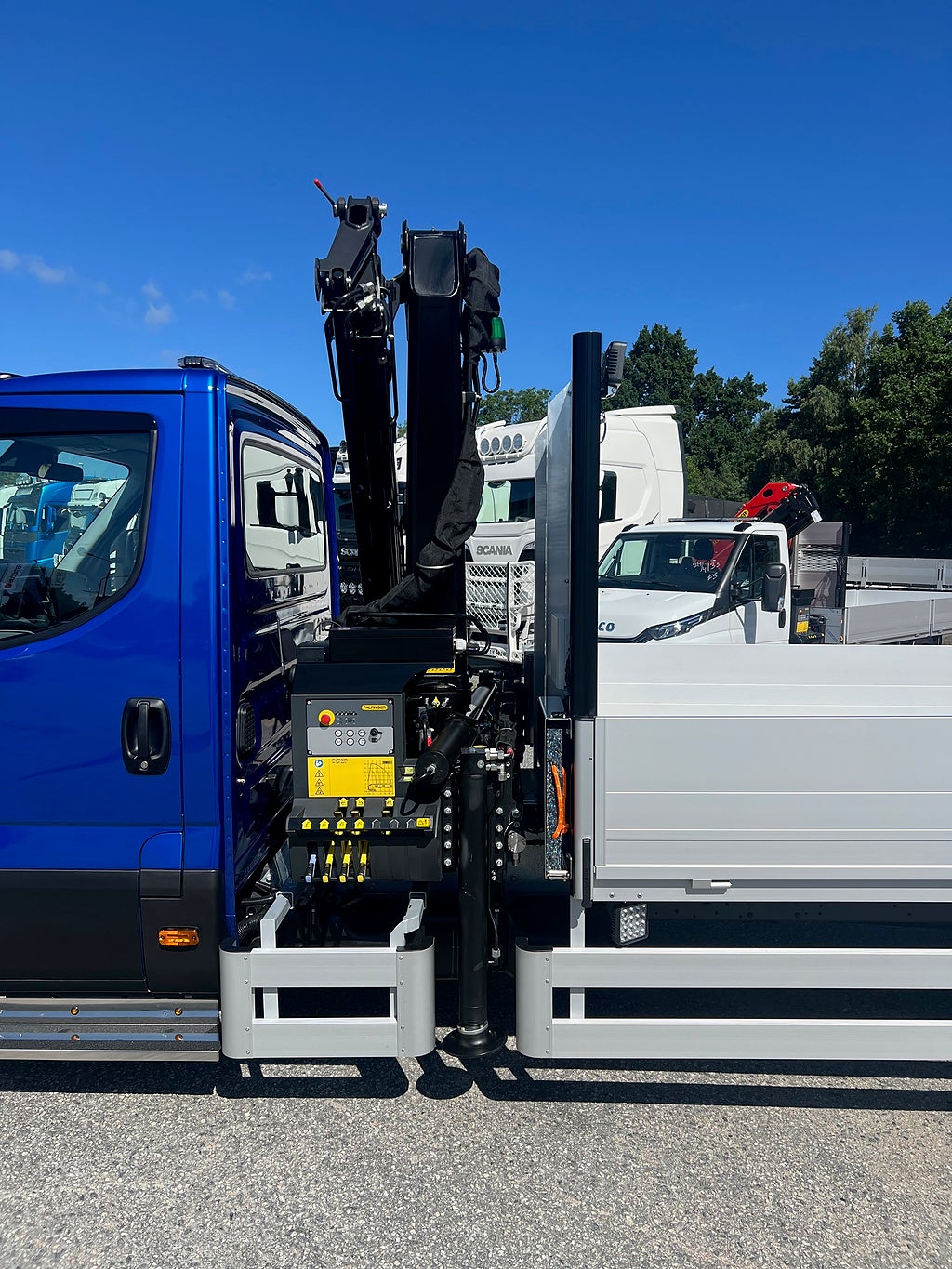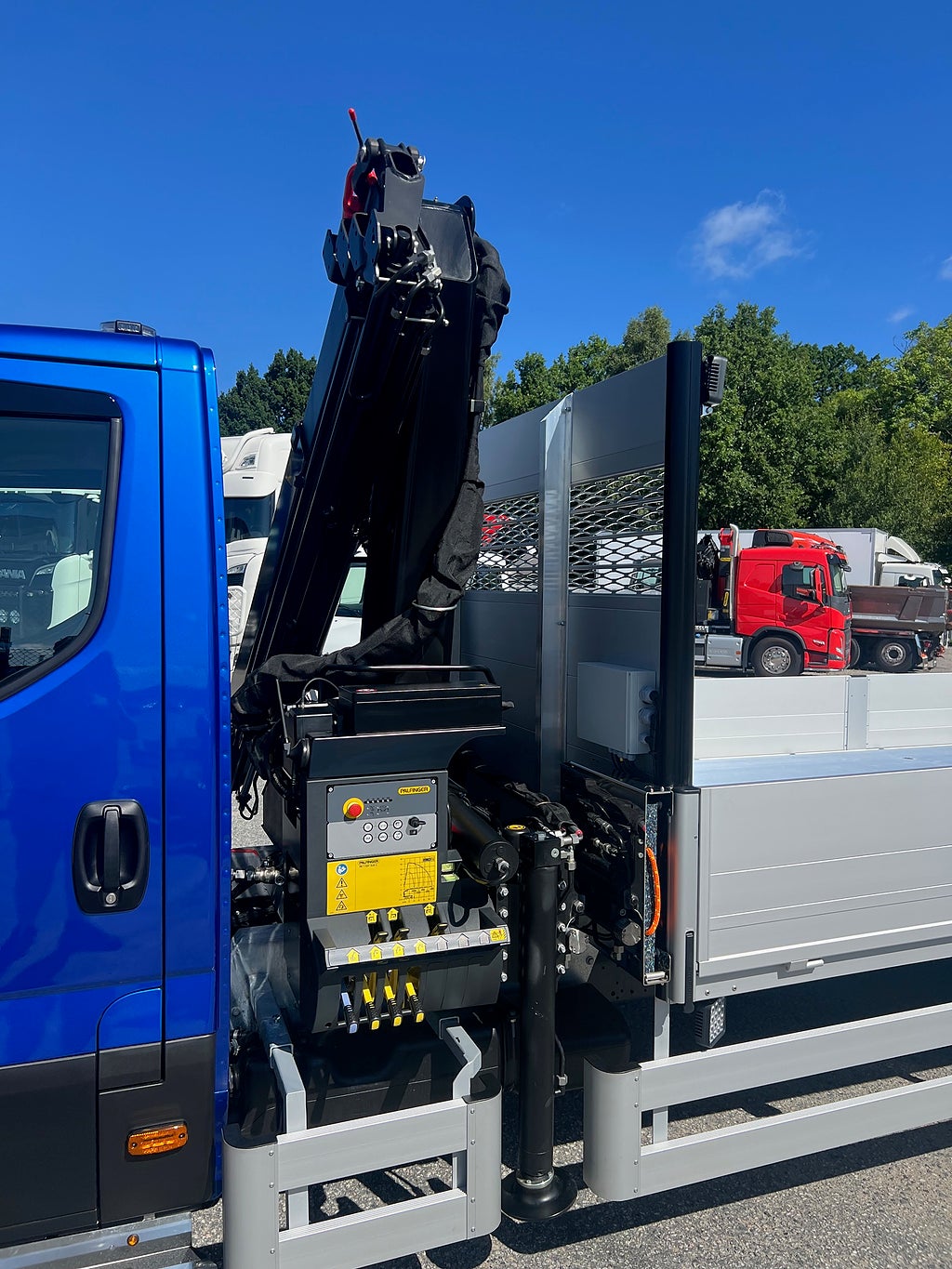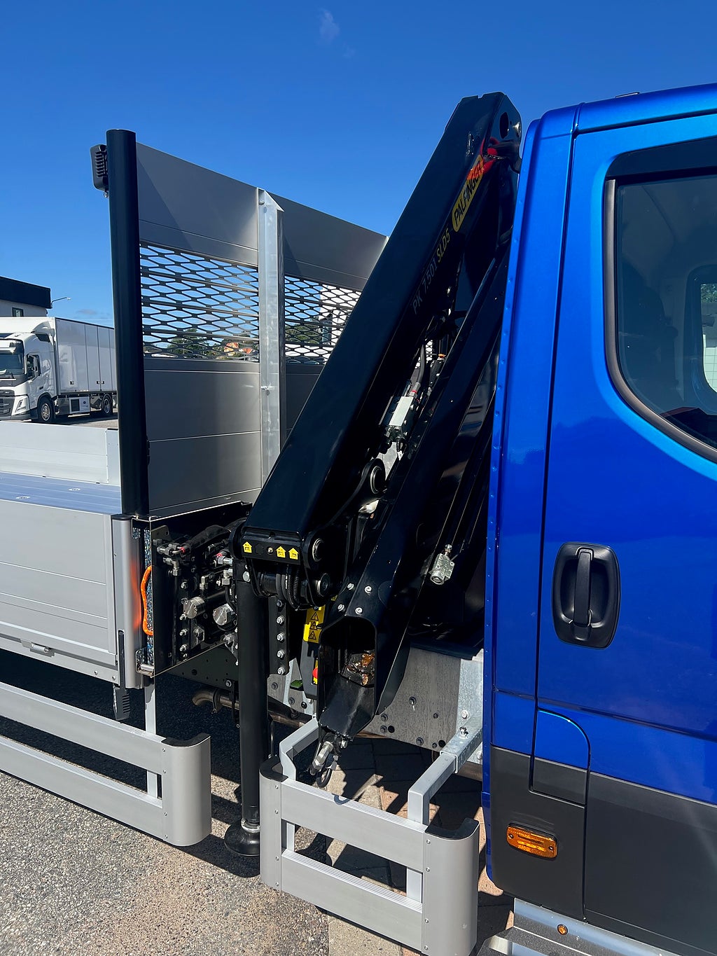 Bältesvarning, El. inställbara backspeglar med värme, Filvarningssystem med aktiv styr assist, AEBS + City Brake, Värme i framruta (Vid torkarblad), Dimljus med kurvljus, Höjdjusterbar fjädrande och eluppvärmd förarstol med minnesskum, Webasto motorvärmare med tidur, 4 väg justering av ratt, Filvarningssystem med aktiv styr assist, Passagerarsoffa med nedfällbart bord, Stoppat nackstöd i textstil, Adaptiv farthållare med kö assist, Komfortdisplay med serviceinformation, Öppet förvaringsfack med USB laddning, Differentialspärr, Förvaringshylla ovanför vindrutan, HVO anpassning, FULL LED stålkastare, HI-CONNECT + NAVIGATION, Alexa, Pack Business Premium, Pack Hi-Drive, Elektrisk Handbroms, Luftfjädring bak, Sidvinds assistent, TPMS Däcktrycksövervakning, Grill med kromade detaljer, Aluminiumgolv på flaket, Flakförlängning bakåt, Godstöttor, Rostfria Navkapslar, Rostfria Sidofotsteg med pos-ljus, 6 Stycken LED Arbetsbelysning, 2 Stycken blixtljus fram & 2 stycken bakåt samt 3 stycken blixtljus per sida, LED Blixtljusramp på taket, LED Extraljus ramp, 2 Stycken Rostfria verktygslådor med skåpsbelysning, Stödbensplattor, Stor strölåda under flaket, Palfinger PK7.501 SLD Kran 4 hydrauliska utskjut till 11.2 m, Hydraulisk utkörning av stödbenen till 4.95 m, Den nya kranen med en lägre kranpelare så bilen blir ca 15 cm lägre än en vanlig,Aluminiumflak med invändiga mått Bredd: 220 Cm Längd: 500 Cm, Max släpvagnsvikt: 3300 Kg, Årsskatt: 2420 Kr, En riktigt fin och genomtänkt byggnation, Kranbil Brädgårds bil Fastflak kran & flak Fast flak Brädgårdsbil, Axelavstånd: 4750 mm, Totalvikt: 7200 Kg, För mer info ring säljare Andreas 0705-494044
