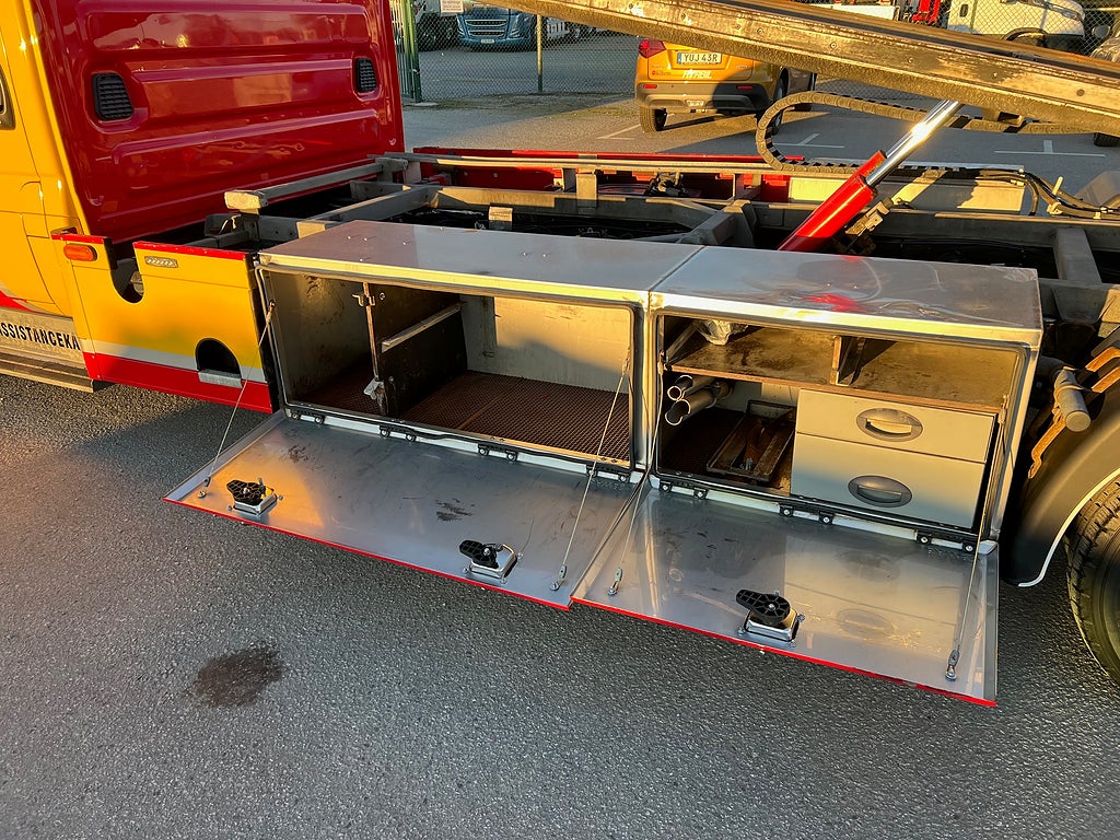 Luftfjädring bak, LED Extraljusramp, Rostfria fotsteg med pos-ljus, Dimljus med kurvljus, Webasto motorvärmare med tidur, Passagerarsoffa, 3 Sitsig, Blixtljusramp på targa bågen, Flaket har kapade hörn i bakkanten, Hål i bakkant för brytrulle, Byggnationen är galvad, Flaket vinklat i bakkanten för låglastvinkel, Lyftbom/Underlift med separat vändbara grindhalvor godkänd för 1800 kg, Isfötter/Stödben sitter i dubbelverkande lyftbom, Fjärrstyrning, Flak & Ramwinch, Hydraulisk sidoförflyttning av Flak-winchen, 12 Volts starthjälp uttag, Årsskatt: 2420 Kr, Tjänstevikt: 5055 Kg, Tillåten Lastvikt: 2145 Kg, Totalvikt: 7200 Kg, Axelavstånd: 4750 mm, Bärgare Bärgningsbil Flakbärgare Biltransport Maskintransport Garagebärgare, För mer info ring säljare Andreas 0705-494044