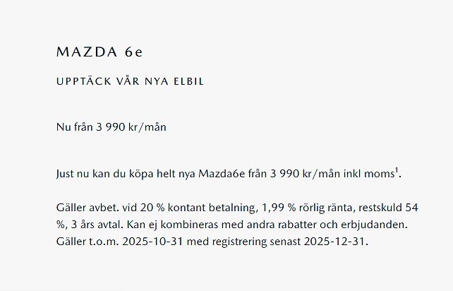 Mazda 6e TAKUMI PLUS 68,8Kwh Laddar 235 km på 15 min
