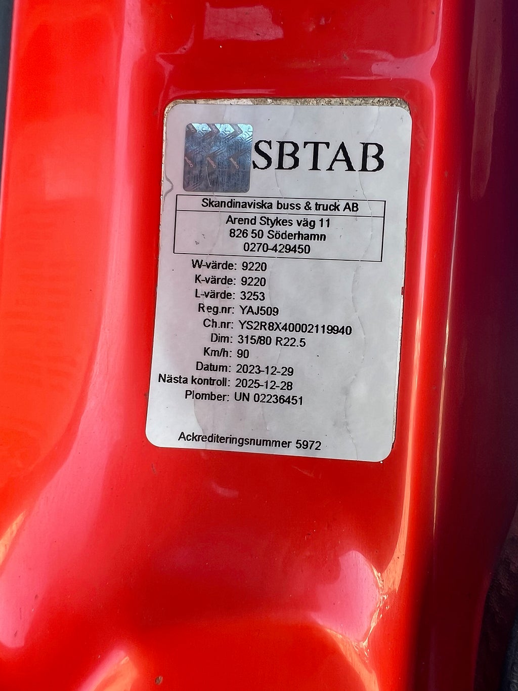 Reg. nr YAJ509