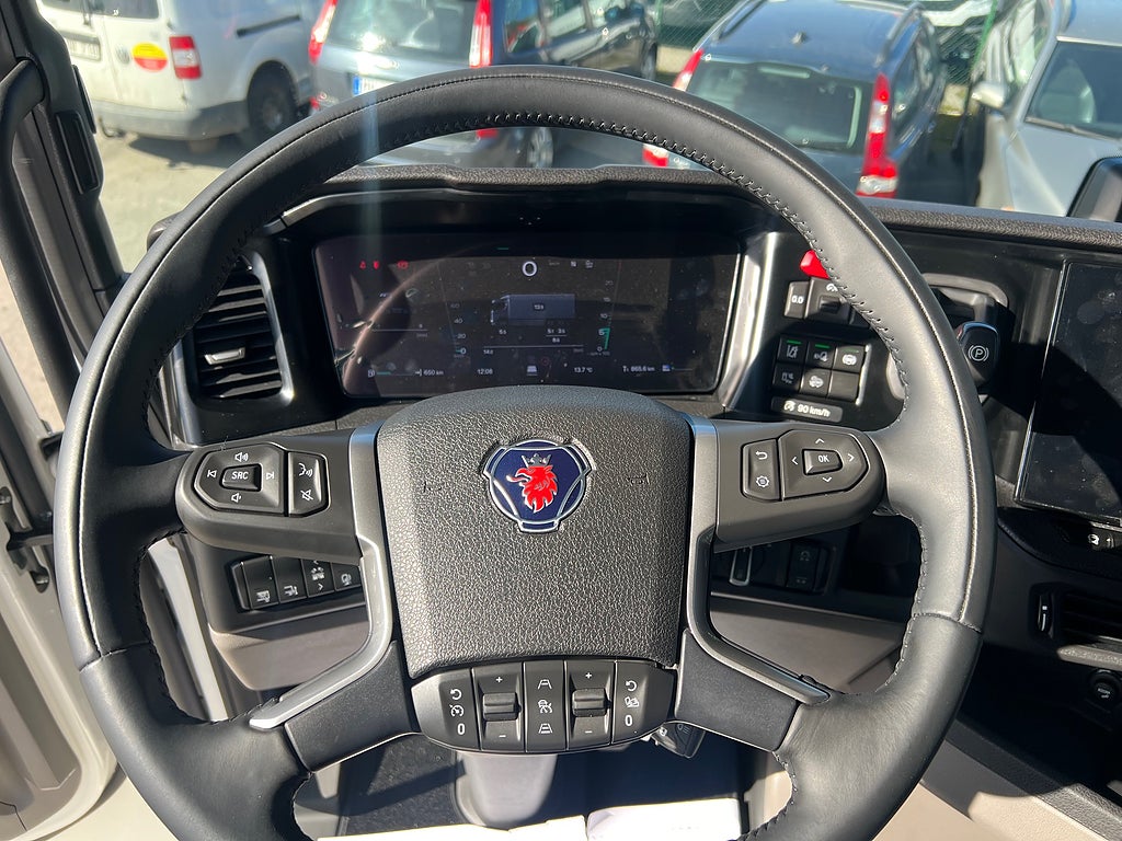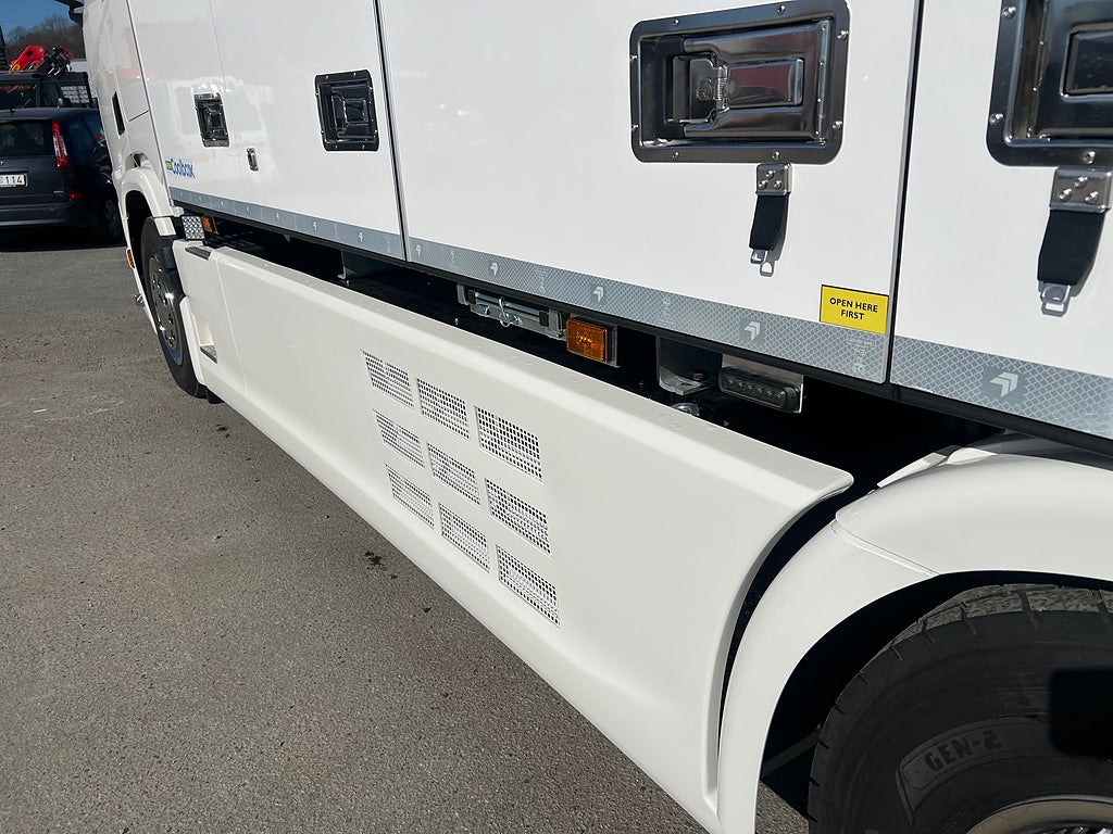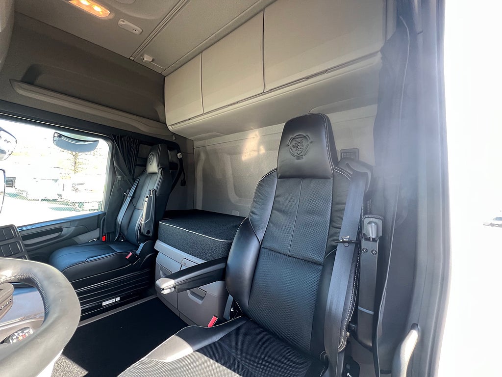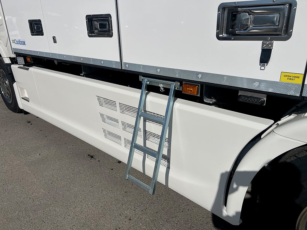 10 000 Kg Framaxel, Trux Takbåge med LED Extraljus, Super drivlinan med G33CM växellådan, Retarder typ R4700D, Växellåda med Ekonomi standard och power program, Hyttfjädring luft, Fällbar ratt i exklusivt läder, Hyttkylare / Nattkyl, Nya instrumentbrädan med Smart Dash Premium paketet och 12" skärm, Strålkastare på tak ovan ruta, Strålkastare i frontgrill, Bältes sträckare förarstolen, Armstöd förarstol & passagerarstol, Luftfjädrad passagerare stol, TPMS / Däcktrycksvarning, Vägmärkes igenkänning, Informationssystem för döda vinkeln (Blind Spot Information System, BSIS), Föraruppmärksamhetsstöd, Scania filbytesvarningssystem LDW, Norfrig Coolbox, FRC / ATP Klassad, Öppningsbarsida, ÖBS, Skåpet är utvändigt 7500 mm, Invändig bredd 2495 mm & Höjd: 3100 mm, Dubbla lastplan / Bommar, Bommar medföljer, Zepro 2000 Kg Z-Lift, 1700 mm Lastbrygga, Thermo King UT-R Spectrum Aggregat med dubbla förångare S-3 + S-3, Bluebox2 Tracking UT-R, Premium Display, Rostfri Bomlåda, Axelavstånd: 4750 mm, Tjänstevikt: 14 076 Kg, Tillåten Lastvikt: 13 924 Kg, Skattevikt: 28 000 Kg, Tågvikt: 80 000 Kg, Skåpbil Skåp bil fjärrbil fjärr bil distributionsbil distribution, En riktigt fin bil med det mesta i utrustning, För mer info ring säljare på 0455-575 50