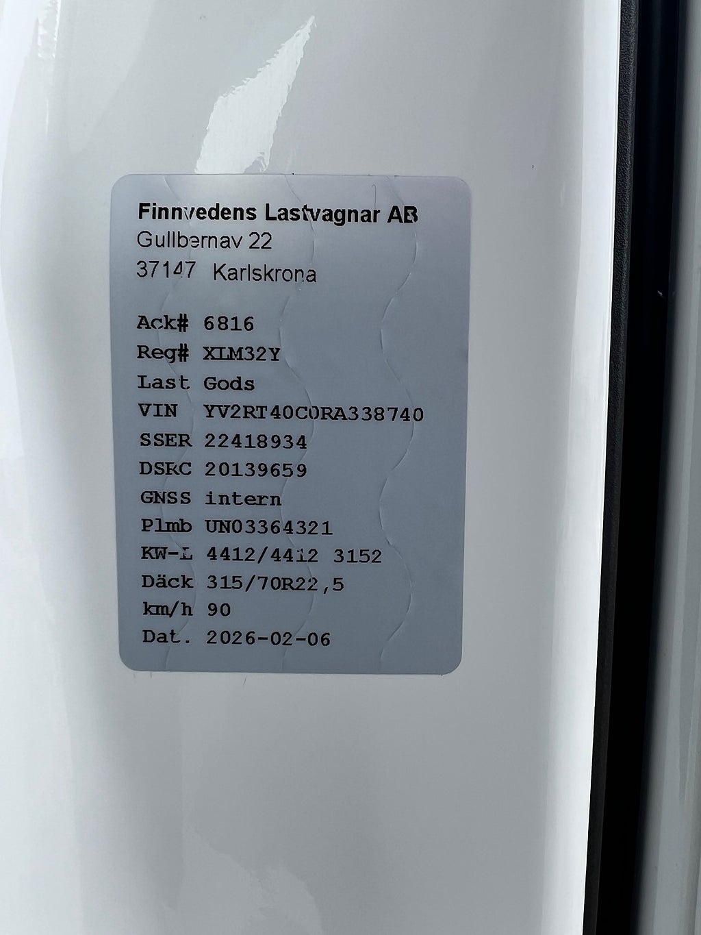 Bränslepaket för D13, Extra hög sovhytt FH (L2H3), Vil- och sovpaket+ FH, Mediapaket med Dynafleet och sidoskärm, Taklucka i tonat glas & elektrisk öppning, Eluppvärmda backspeglar med vidvinkelspeglar inkl. närsiktsspegel och hörnkamera på passagerarsidan, Förarpaket++, Siktpaket++, Calix batteriladdare BC2420 monterad i batterilådan, Extra ljudisolering för XL-hytt, Löpaxel dubbelmonterade hjul, Konstantfarthållare med ECO-läge (ECO TORQUE), LED Huvudstrålkastare och helljus med automatisk avbländning, Kollisionsvarningssystem inkl. ACC och nödbromssystem, Ljudpaket hög nivå, TV-prep ovan vänster dörr, Körfältsassistans, I-See med Information om topografi via karta GPS och centralt sparad data, Förstärkt växellåda, Retarder växellådsmonterad hydralisk kompaktretarderare, Extra aerodynamiska detaljer, 33 liters kylbox med frysdel under säng, Bäddmadrass Premium, Luftfjädrad hyttfjädring, Vilstol sväng- och fällbar, Armstöd båda sidor förar- och passagerarstol, Förarstol lyx luftfjädrad med värme samt minnesfunktion, Parkeringsvärmare motor och hytt, Jost flyttbar vändskiva, Helt Gångbord, Hjulbas 3200 mm, Nya Styrdäck, Besiktad Tom: 2027-02-28, Tågvikt: 65 000 Kg, För mer info ring säljare Andreas 0705-494044