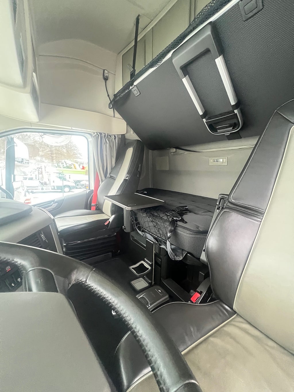 Förarpaket FH+, Siktpaket+, Calix Batteriladdare, Extra hög sovhytt FH (L2H3), Vil- och sovpaket Arctic, Mediapaket med Dynafleet, Taklucka i tonat glas & elektrisk öppning, 13 liters I-SAVE dieselmotor 500 hk med 2800 Nm Turbo compound, TV-prep ovan vänster dörr, Körfältsassistans, Filbytesassistans LCS, Ljudpaket hög nivå, 2 st extra fjärrljus i tak, Kollisionsvarningssystem inkl. ACC och nödbromssystem, I-See med Information om topografi via karta GPS och centralt sparad data, Förstärkt växellåda, Släpvagnsbroms "Stretch" utökad bromsförmåga, 33 liters kylbox med frysdel under säng, Stolklädsel läder i svart/grå färg, Bäddmadrass Premium, Luftfjädrad hyttfjädring, Armstöd på båda sidor av förarstol, Belysning i ljusskylt, Förarstol lyx luftfjädrad med värme samt minnesfunktion, Parkeringsvärmare motor och hytt, Löpaxel dubbelmonterade hjul / Full Boggie, Bränslepaket - långdistans fjärrtransport, Frontskydd / Älgstaket med 6 St LED Extraljus, Jost Flyttbar vändskiva, Hjulbas 3200 mm, Besiktad Tom: 2026-10-31, För mer info ring säljare Andreas 0705-494044