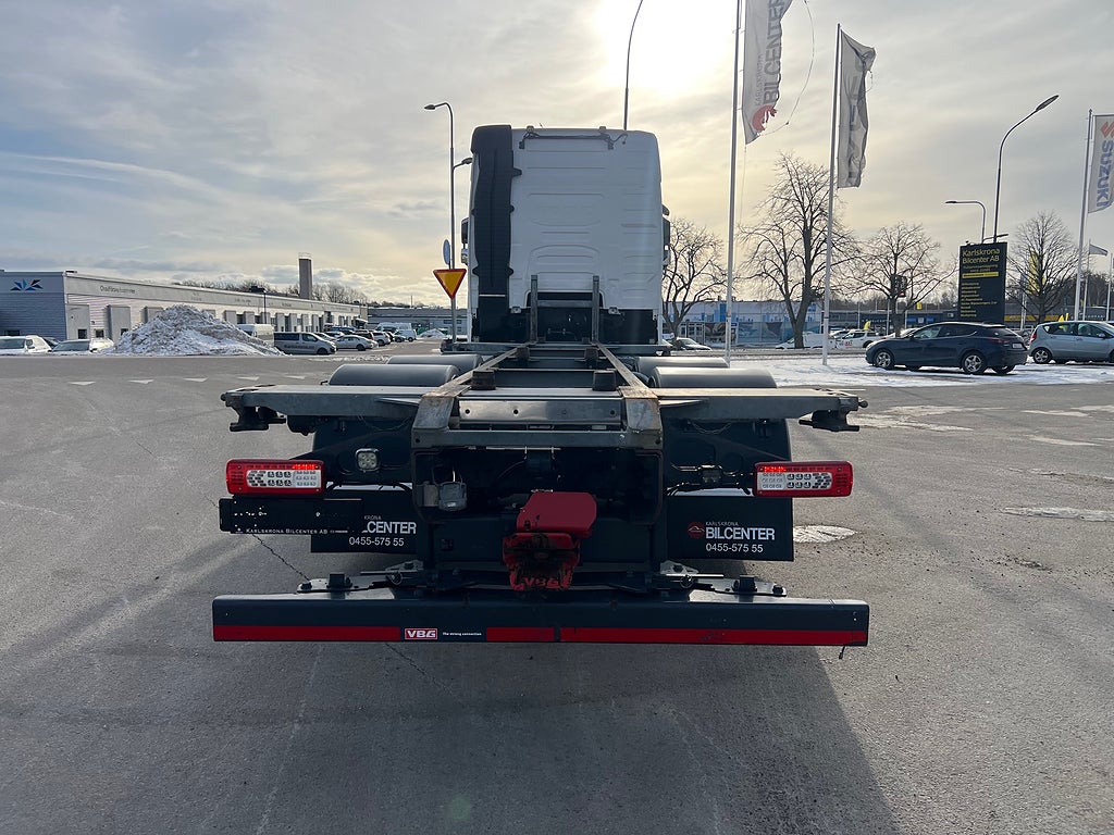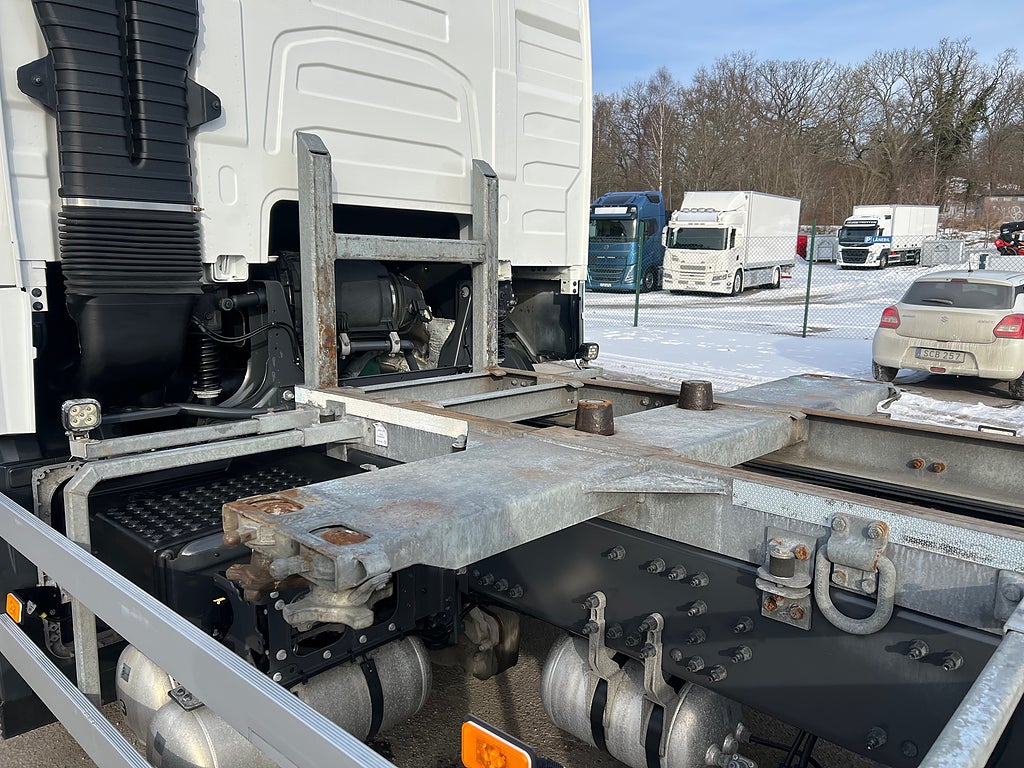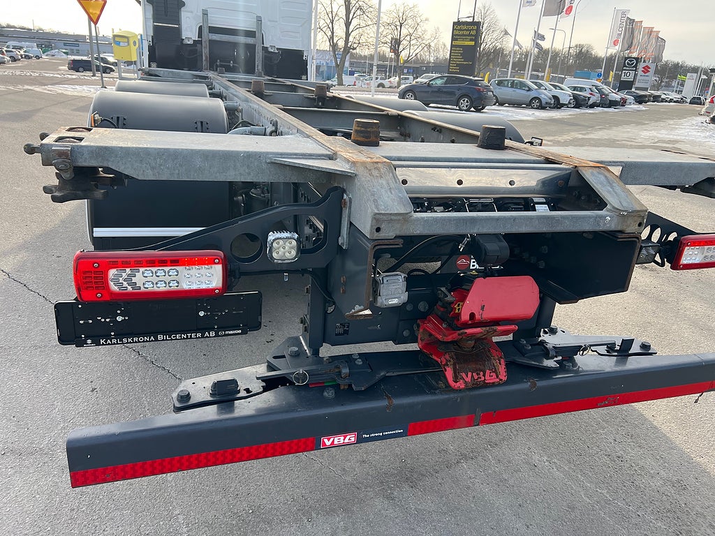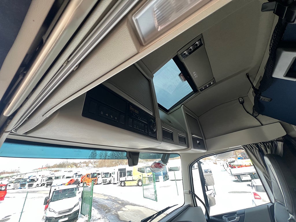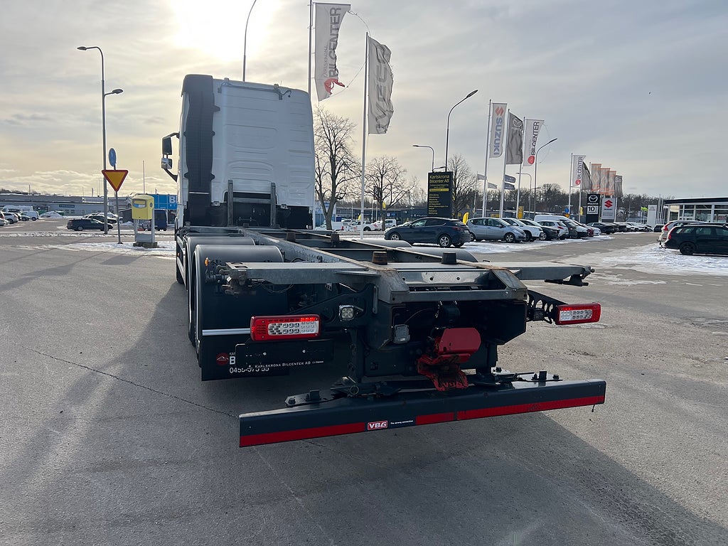 Hög sovhytt FH (L2H2), Vil- och sovpaket+ FH, Mediapaket med Navigation Dynafleet och sidoskärm, Taklucka i tonat glas & elektrisköppning, Bränsletank aluminium 730 Liter, Eluppvärmda backspeglar med vidvinkelspeglar inkl. närsiktsspegel och hörnkamera på passagerarsidan, Förarpaket++, Siktpaket++, Farthållare med ECO-roll och I-cruise, LED Huvudstrålkastare och helljus med automatisk avbländning, Kollisionsvarningssystem inkl. ACC och nödbromssystem, Körfältsassistans, Ljudpaket hög nivå, I-See med Information om topografi via karta GPS och centralt sparad data, Retarder växellådsmonterad hydraulisk kompaktretarderare, Släpvagnsbroms "Stretch" utökad bromsförmåga, 33 liters kylbox med frysdel under säng, Stötfångarspoiler, Stolklädsel läder i svart/grå färg, Armstöd båda sidor förar- och passagerarstol, Belysning i ljusskylt, Förarstol lyx med värme samt minnesfunktion, Parkeringsvärmare motor och hytt, Tågvikt: 70 000 Kg, Växelflaksrede BDF Container fäste Containerfäste Lagab Växelskåp VXL Skåp, För mer info ring säljare Andreas 0705-494044