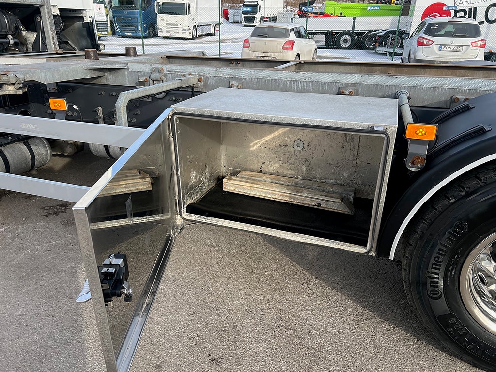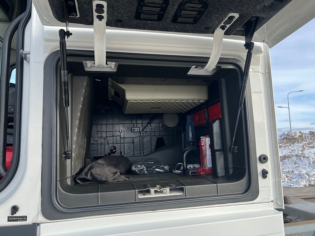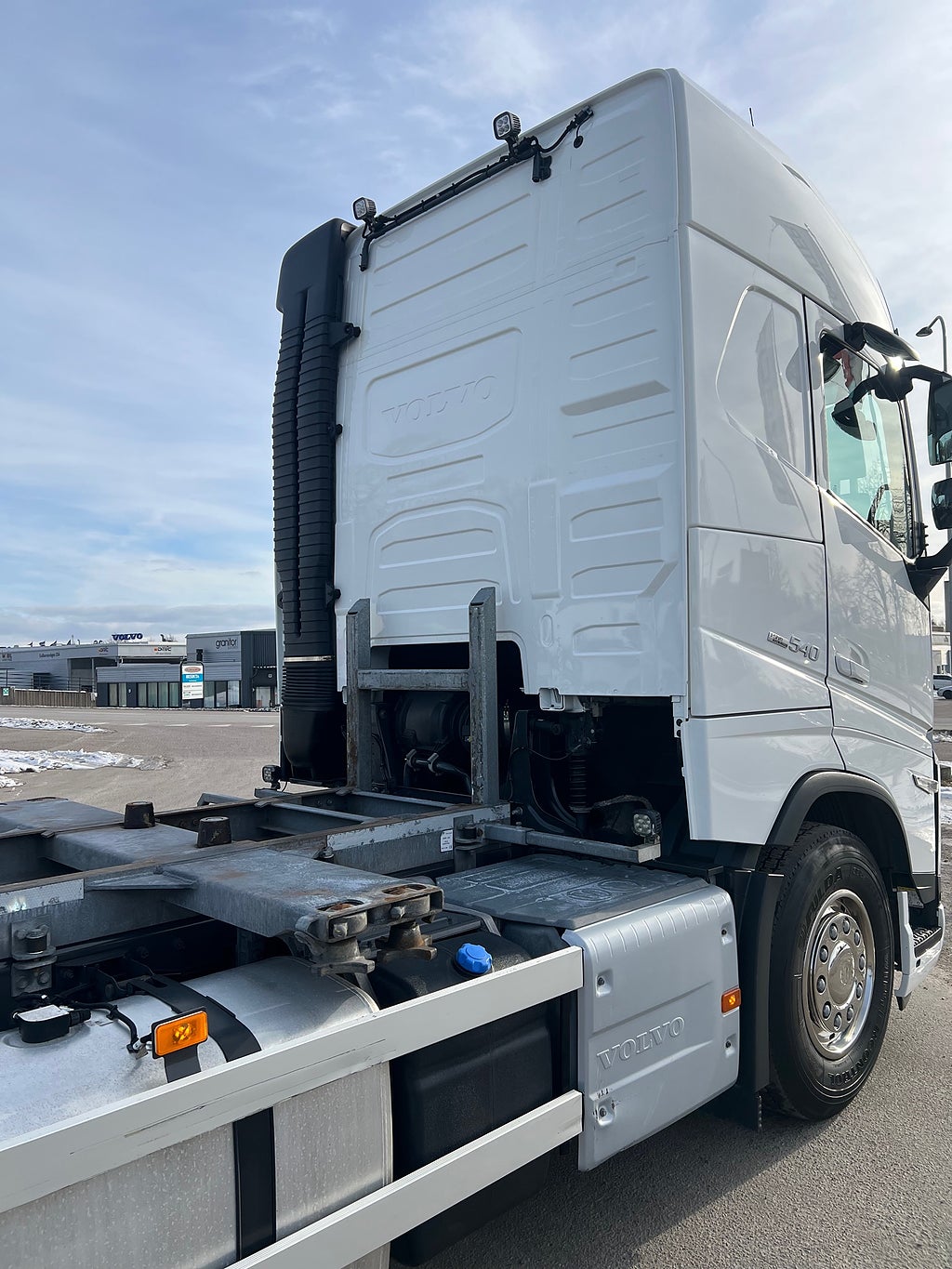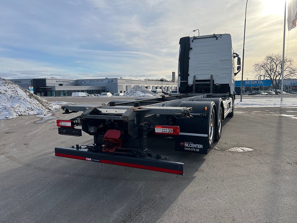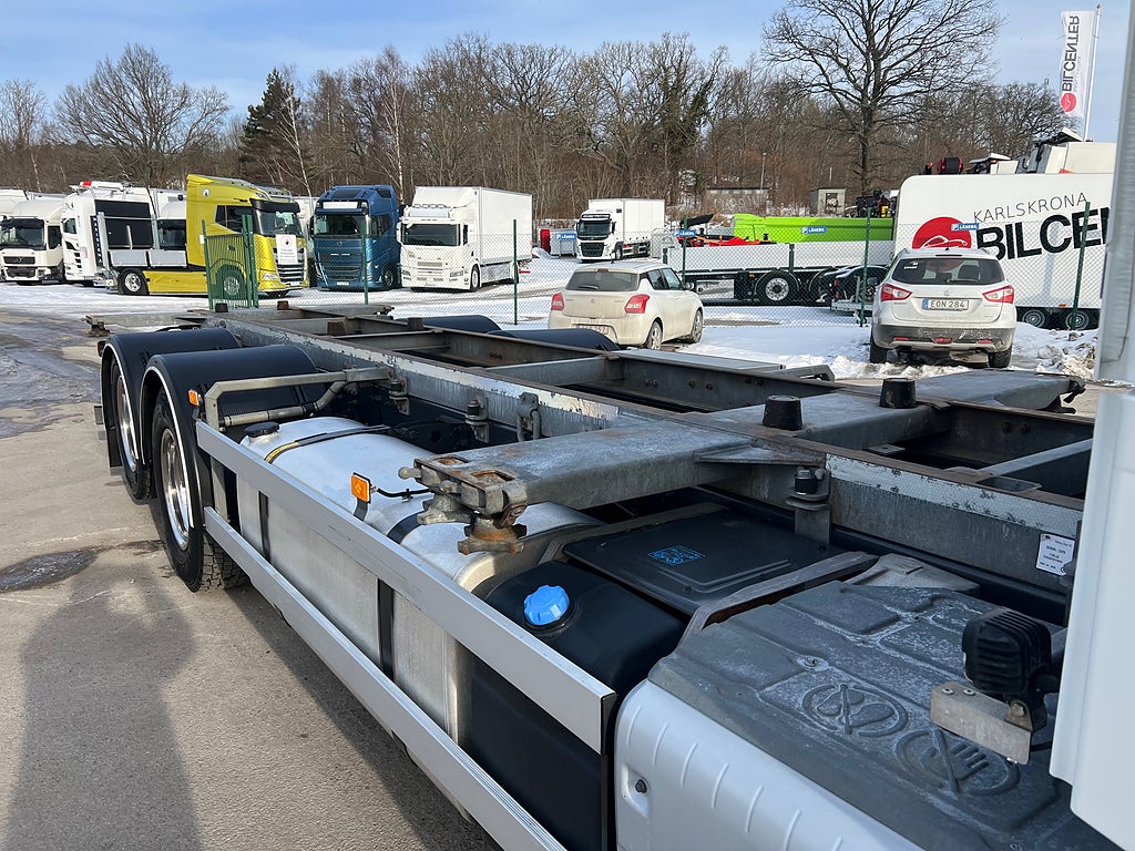 Hög sovhytt FH (L2H2), Vil- och sovpaket+ FH, Mediapaket med Navigation Dynafleet och sidoskärm, Taklucka i tonat glas & elektrisköppning, Bränsletank aluminium 730 Liter, Eluppvärmda backspeglar med vidvinkelspeglar inkl. närsiktsspegel och hörnkamera på passagerarsidan, Förarpaket++, Siktpaket++, Farthållare med ECO-roll och I-cruise, LED Huvudstrålkastare och helljus med automatisk avbländning, Kollisionsvarningssystem inkl. ACC och nödbromssystem, Körfältsassistans, Ljudpaket hög nivå, I-See med Information om topografi via karta GPS och centralt sparad data, Retarder växellådsmonterad hydraulisk kompaktretarderare, Släpvagnsbroms "Stretch" utökad bromsförmåga, 33 liters kylbox med frysdel under säng, Stötfångarspoiler, Stolklädsel läder i svart/grå färg, Armstöd båda sidor förar- och passagerarstol, Belysning i ljusskylt, Förarstol lyx med värme samt minnesfunktion, Parkeringsvärmare motor och hytt, Tågvikt: 70 000 Kg, Växelflaksrede BDF Container fäste Containerfäste Lagab Växelskåp VXL Skåp, För mer info ring säljare Andreas 0705-494044
