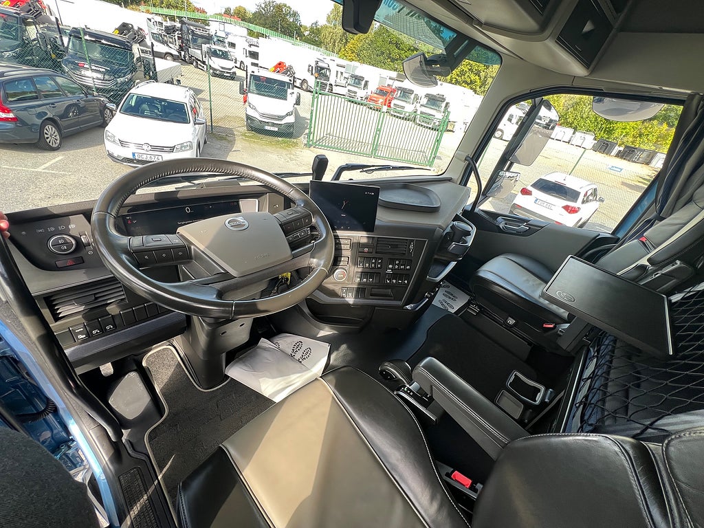 Bränslepaket PLUS för D13, Extra hög sovhytt FH (L2H3), Mediapaket med Navigation, Dynafleet och sidoskärm, Taklucka i tonat glas & elektrisk öppning, Tandem axellyft, Bränsletank aluminium 405 Liter, Eluppvärmda backspeglar med vidvinkelspeglar inkl. närsiktsspegel och hörnkamera på passagerarsidan, Förarpaket++, Siktpaket+, Extra ljudisolering för XL-hytt, Vindavvisare monterad på dörrbåge FH, Konstantfarthållare med ECO-läge (ECO TORQUE), LED Huvudstrålkastare och helljus med automatisk avbländning, Assistansuppkoppling med mikrofon VAS (Volvo Action Service) 5 års fri uppkoppling, Kollisionsvarningssystem inkl. ACC och nödbromssystem, Active Grip Antispinnkontroll, TV-prep ovan vänster dörr, Körfältsassistans, Ljudpaket hög nivå, tFörstärkt växellåda, I-See med Information om topografi via karta GPS och centralt sparad data, Topografi-information 5 år förbetalt abonnemang, Retarder växellådsmonterad hydralisk kompaktretarderare, Boggilyft, 33 liters kylbox med frysdel under säng, Stolklädsel läder i svart/grå färg, Bäddmadrass Premium, Vilstol sväng- och fällbar, Armstöd båda sidor förar- och passagerarstol, Belysning i ljusskylt, Förarstol lyx luftfjädrad med värme samt minnesfunktion, Parkeringsvärmare motor och hytt, Jost Flyttbar vändskiva, Gångbord, OnSpot slirskydd, Hjulbas 3400 mm, Tågvikt: 74 000 Kg, För mer info ring säljare Andreas 0705-494044