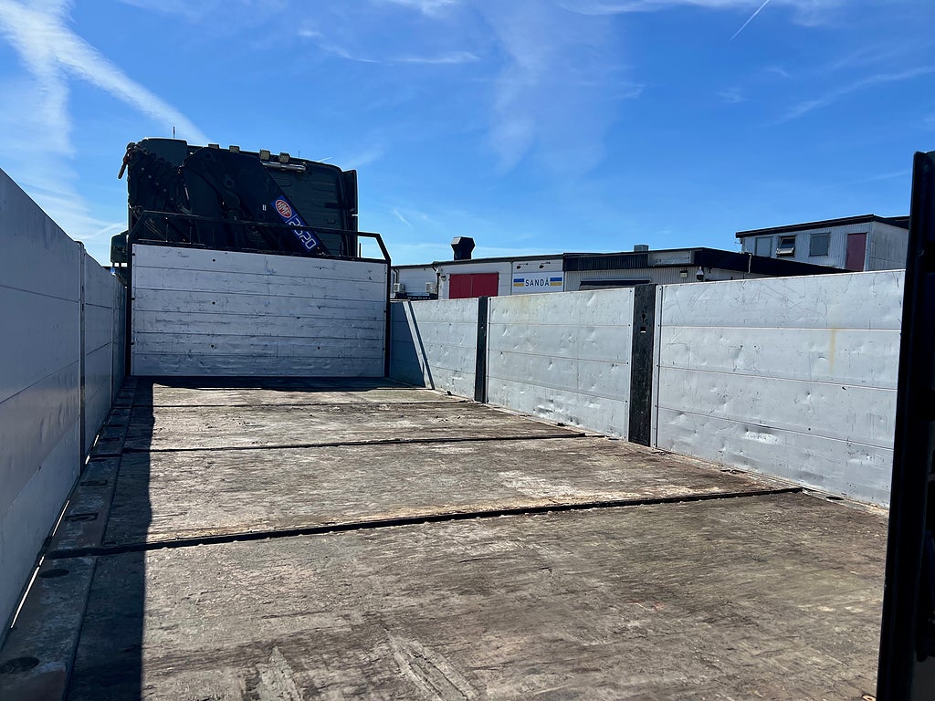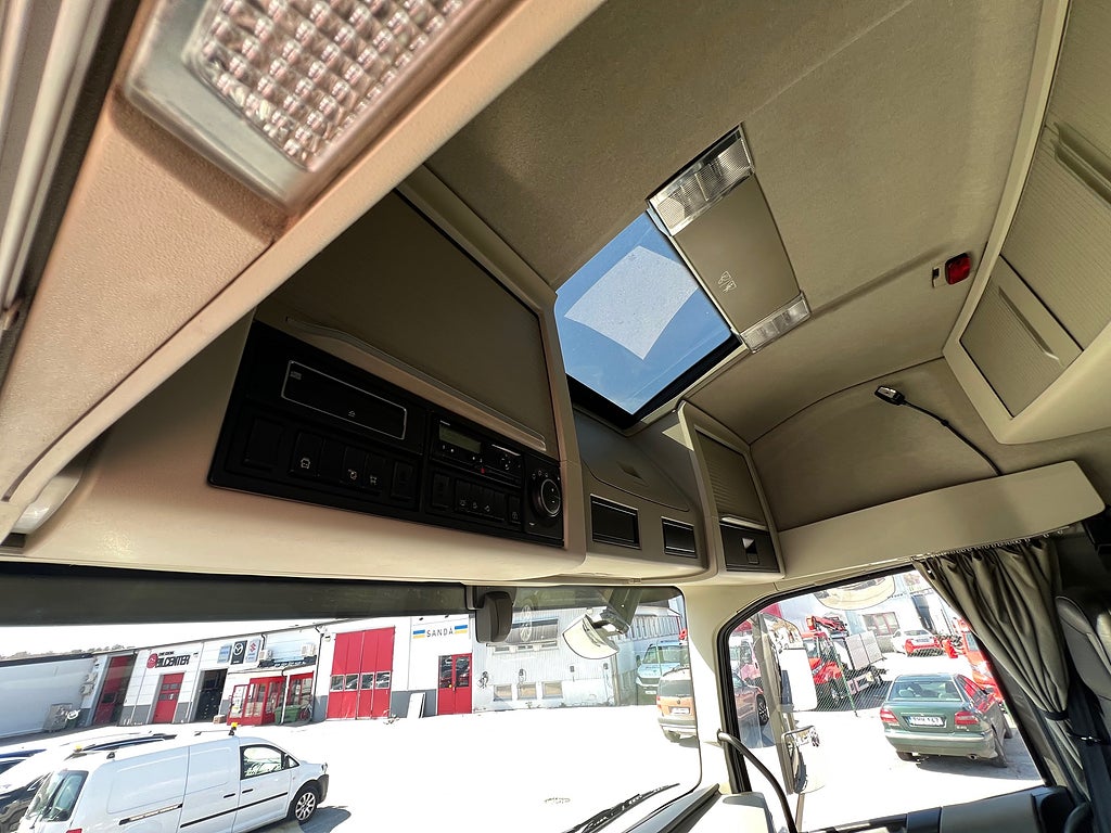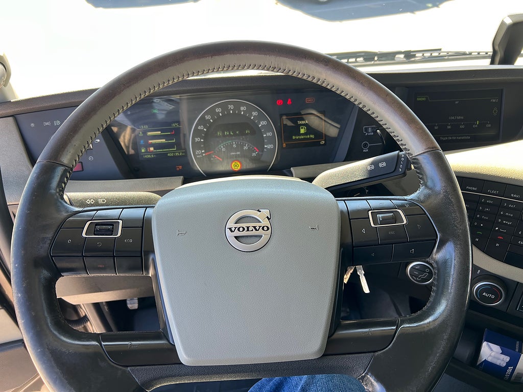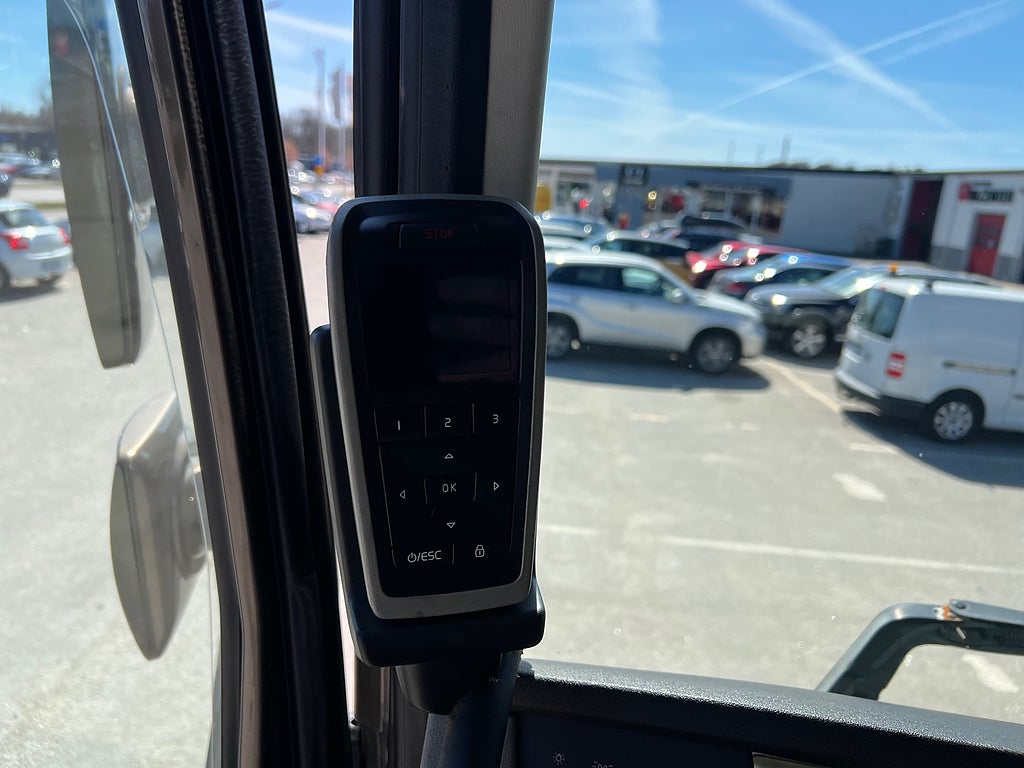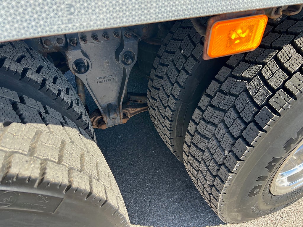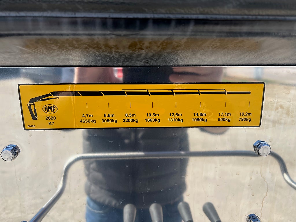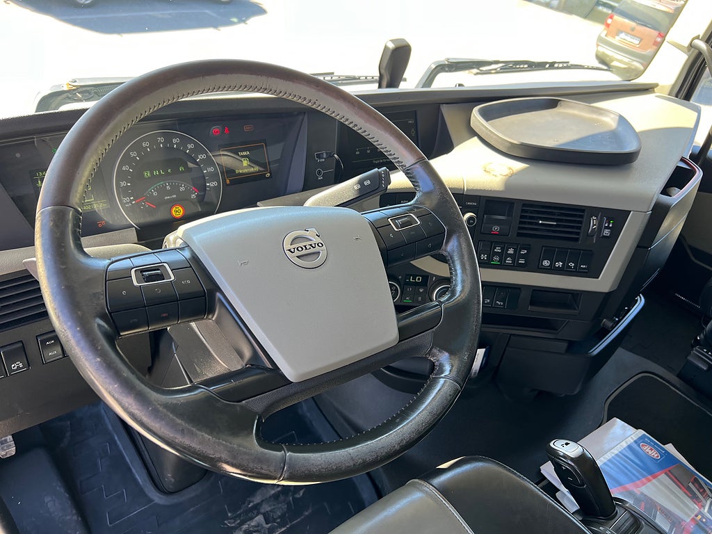 Förarpaket FH++, Siktpaket+, Extra hyttisolering FH Globetrotter, Interiör i mjuk textil i matchande grå/ beige toner stolklädsel i läder, Hög sovhytt FH (L2H2), Vil- och sovpaket Arctic+, Ljudpaket avancerat power, Taklucka i tonat glas elektrisk öppning, Extra ljudpaket 400 W slutsteg subwoofer, Multifunktionell fjärrkontroll, Brandvarnare, Elektronisk startspärr (immobilizer), Bi-Xenonlampor hel- och halvljus, Svart Älgstaket / Frontskydd med LED Extraljus, Assistansuppkoppling med mikrofon, TV-prep ovan vänster dörr, Förstärkt växellåda, 33 liters kylbox med frysdel under säng, Armstöd i läder, Stolklädsel läder i svart/grå färg, Bäddmadrass Premium, Luftfjädrad hyttfjädring, Vilstol sväng- och fällbar, Armstöd båda sidor förar- och passagerarstol, Förarstol lyx luftfjädrad med värme samt minnesfunktion, Kontrollpanel i sovhytt lyx, Boggielåda, Rostfri Takbåge med extraljus, HMF 2620 K7 Kran, 7 Stycken hydrauliska utskjut, Flakets invändiga mått är Längd: 651 Cm & Bredd: 247 Cm, Hjulbas 4100 mm, Tjänstevikt: 16 590 Kg, Tillåten Lastvikt: 15 410 Kg, Totalvikt: 32 000 Kg, Tågvikt: 70 000 Kg, Tridem Brädgårdsbil Kranbil Brädgårs bil Kran bil,
