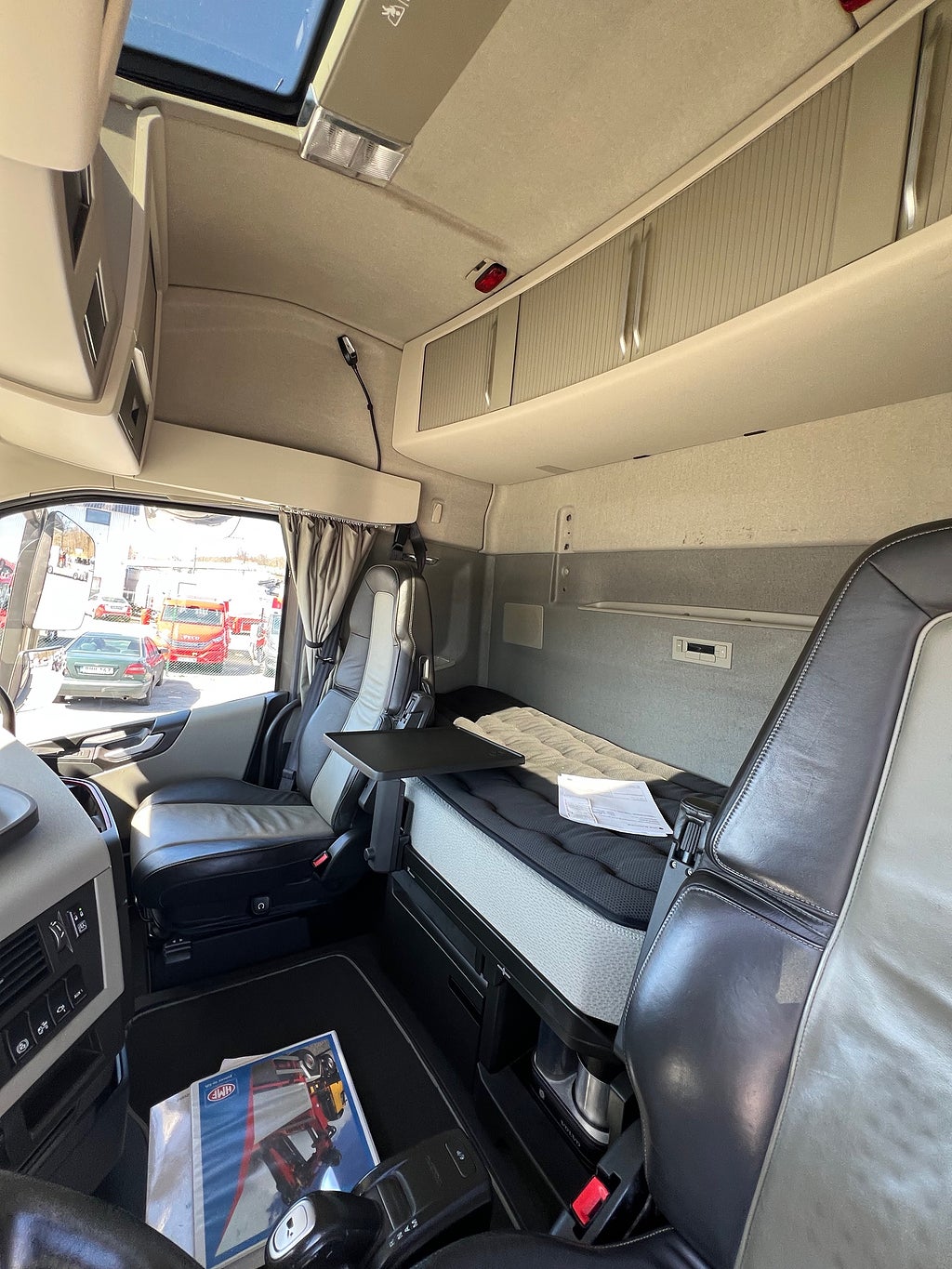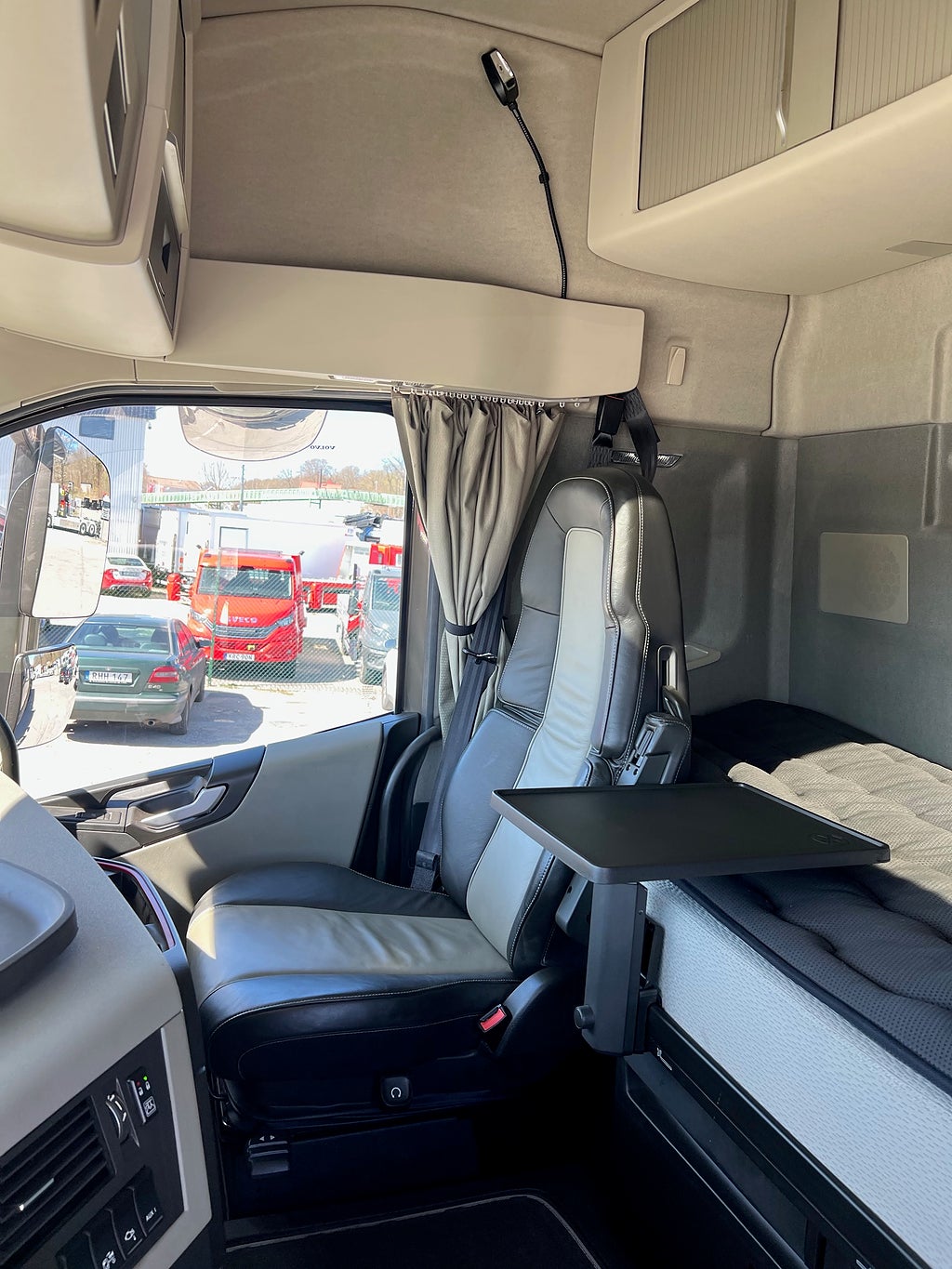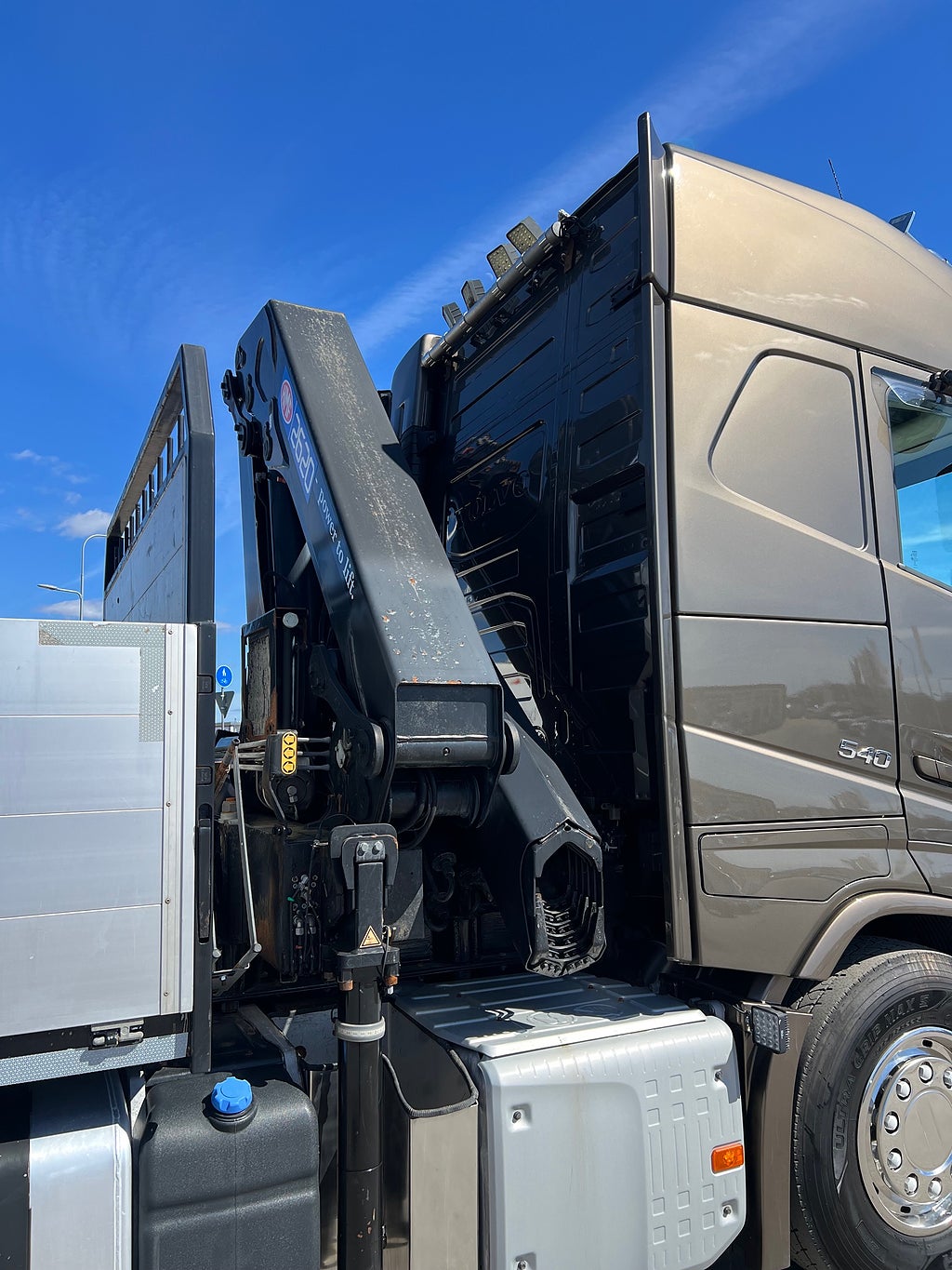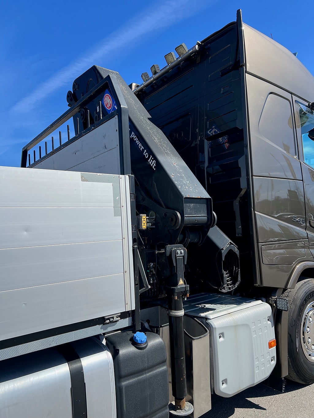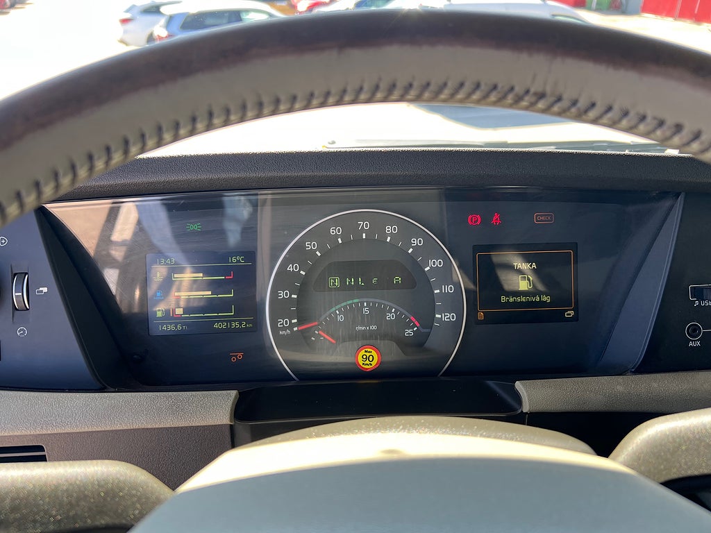 Förarpaket FH++, Siktpaket+, Extra hyttisolering FH Globetrotter, Interiör i mjuk textil i matchande grå/ beige toner stolklädsel i läder, Hög sovhytt FH (L2H2), Vil- och sovpaket Arctic+, Ljudpaket avancerat power, Taklucka i tonat glas elektrisk öppning, Extra ljudpaket 400 W slutsteg subwoofer, Multifunktionell fjärrkontroll, Brandvarnare, Elektronisk startspärr (immobilizer), Bi-Xenonlampor hel- och halvljus, Svart Älgstaket / Frontskydd med LED Extraljus, Assistansuppkoppling med mikrofon, TV-prep ovan vänster dörr, Förstärkt växellåda, 33 liters kylbox med frysdel under säng, Armstöd i läder, Stolklädsel läder i svart/grå färg, Bäddmadrass Premium, Luftfjädrad hyttfjädring, Vilstol sväng- och fällbar, Armstöd båda sidor förar- och passagerarstol, Förarstol lyx luftfjädrad med värme samt minnesfunktion, Kontrollpanel i sovhytt lyx, Boggielåda, Rostfri Takbåge med extraljus, HMF 2620 K7 Kran, 7 Stycken hydrauliska utskjut, Flakets invändiga mått är Längd: 651 Cm & Bredd: 247 Cm, Hjulbas 4100 mm, Tjänstevikt: 16 590 Kg, Tillåten Lastvikt: 15 410 Kg, Totalvikt: 32 000 Kg, Tågvikt: 70 000 Kg, Tridem Brädgårdsbil Kranbil Brädgårs bil Kran bil,