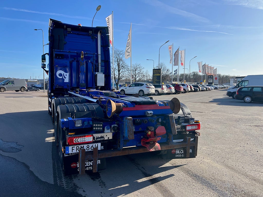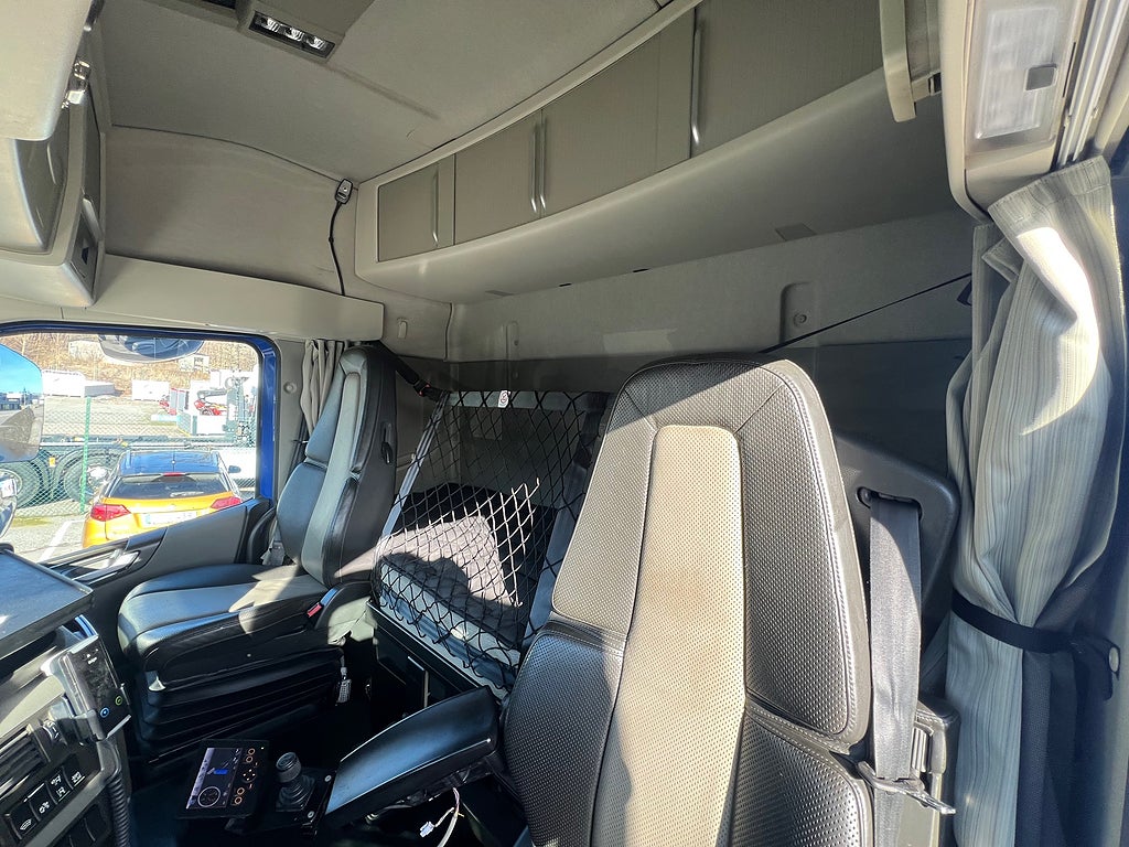 10 000 Kg Framaxel, Siktpaket+, Hög sovhytt FH (L2H2), Vil- och sovpaket Arctic, Mediapaket med Dynafleet, Taklucka i tonat glas & elektrisk öppning, Förarpaket FH+, Kollisionsvarningssystem inkl. nödbromssystem, Körfältsassistans med återstyrning, Förstärkt växellåda, Krypväxel, Släpvagnsbroms "Stretch" utökad bromsförmåga, VDS med Personliga inställningar, Dynamisk styrservo (VDS), 33 liters kylbox med frysdel under säng, Elektrisk motordoppvärmare 220 volt, Stolklädsel läder i svart/grå färg, Bäddmadrass Premium, Armstöd på båda sidor av förarstol, Belysning i ljusskylt, Förarstol lyx luftfjädrad med värme & ventilerad samt minnesfunktion, Parkeringsvärmare motor och hytt, Rostfri takbåge med extraljus & varningsljus, Plogbåge med plogbelysning & extraljus, Mählers VV95 frontfäste, Sidofäste & S-bom, Fullt plogutrustad, Hiab Multilift 21 Tons lastväxlare, Fast PLC styrdon & fjärrkontroll till lastväxlare, Snabbsänkning på lastväxlare, Puttbalk, Besiktad Tom: 2027-01-31, Tjänstevikt: 13 875 Kg, Tillåten Lastvikt: 14 125 Kg, Skattevikt: 28 000 Kg, Axelavstånd: 4600 mm, Tågvikt: 70 000 Kg, För mer info ring säljare Andreas 0705-494044