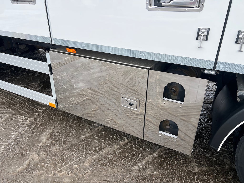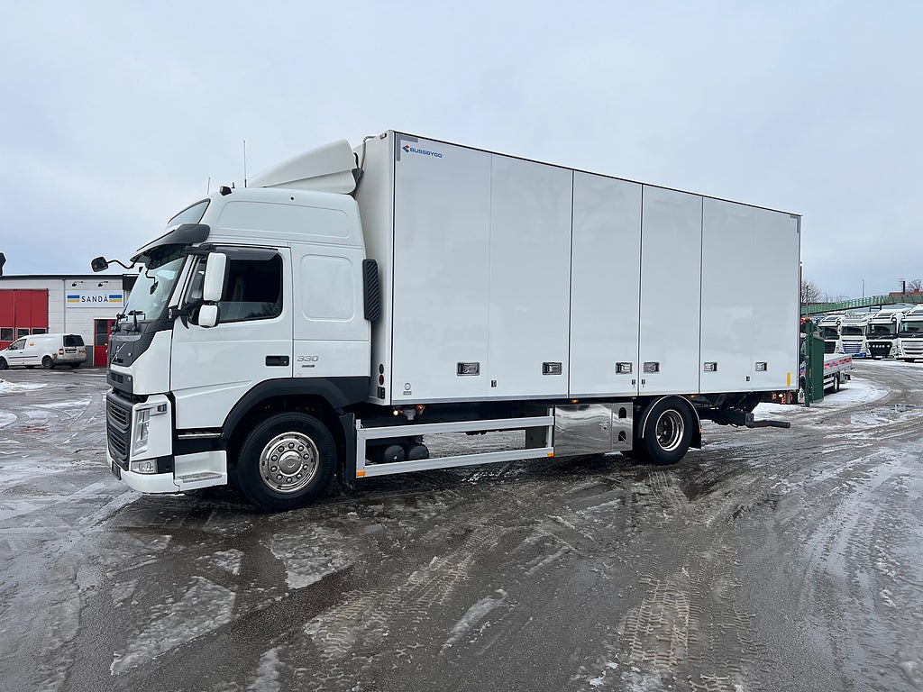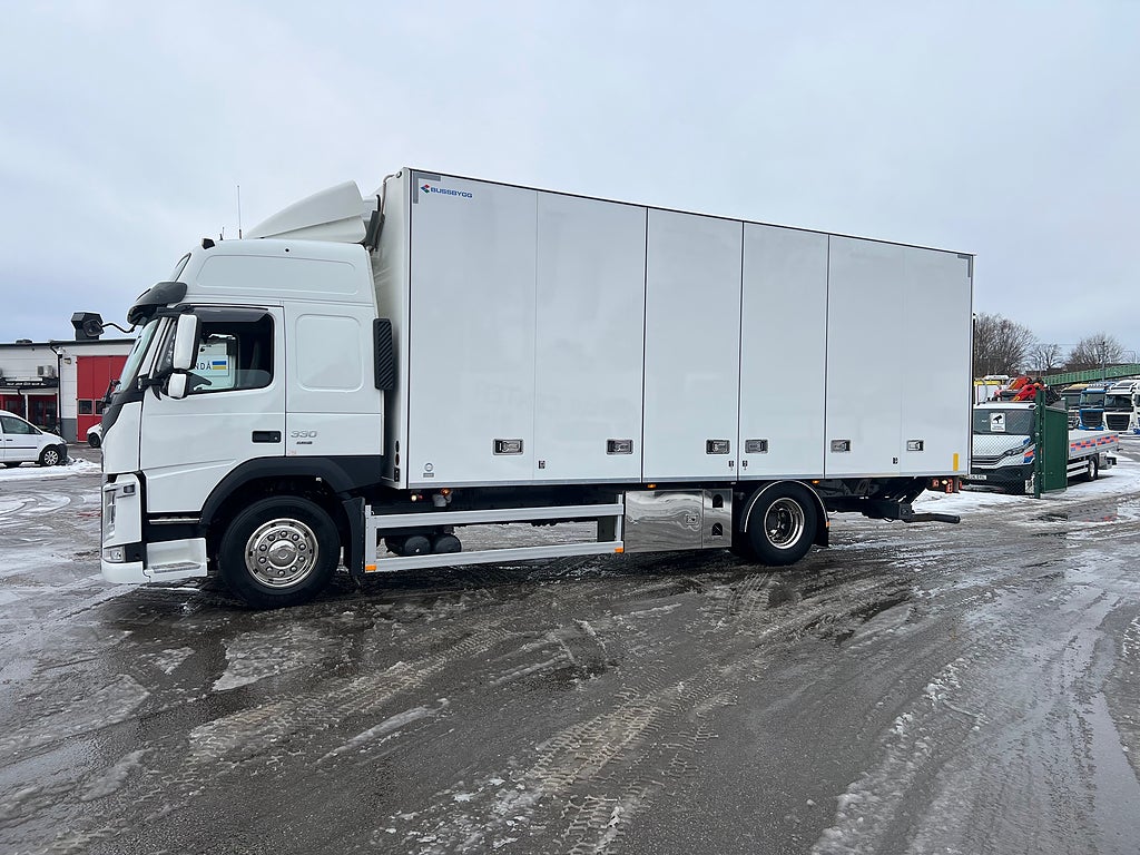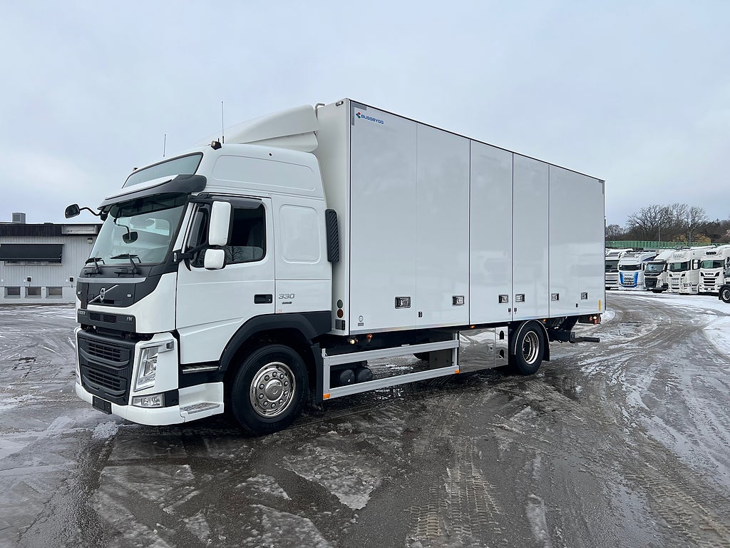 FM 330 4x2 Skåpbil med värmare, Bussbygg Öppningsbarsida