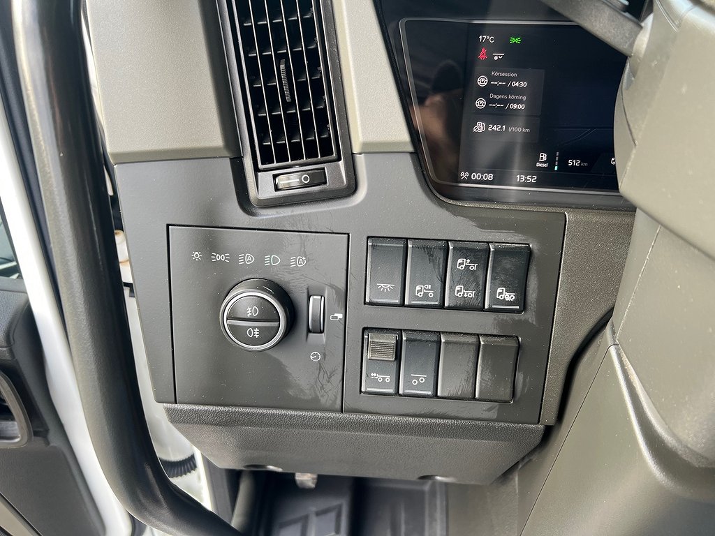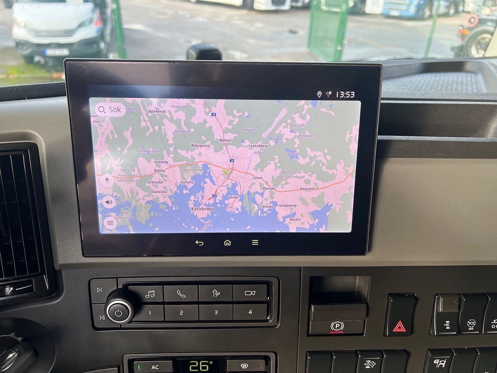 Bränslepaket, Hög sovhytt FM, Vil- och sovpaket FM, Mediapaket med Navigation Dynafleet och sidoskärm, Taklucka i tonat glas & elektrisk öppning, Eluppvärmda backspeglar med vidvinkelspeglar inkl. närsiktsspegel och hörnkamera på passagerarsidan, Förarpaket+, Siktpaket+, Farthållare med ECO-roll och I-cruise, Kollisionsvarningssystem inkl. nödbromssystem, Ljudpaket hög nivå, Multifunktionell fjärrkontroll, Körfältsassistans med återstyrning, I-See med Information om topografi via karta GPS och centralt sparad data, Släpvagnsbroms "Stretch" utökad bromsförmåga, VDS med Personliga inställningar och Styrassistans, Armstöd båda sidor förar- och passagerarstol, Belysning i ljusskylt, Förarstol komfort, Parkeringsvärmare motor och hytt, Lagab Containerrede Containerbil Container fäste BDF Container ram växelflak, Hjulbas 4900 mm, För mer info ring säljare Andreas 0705-494044