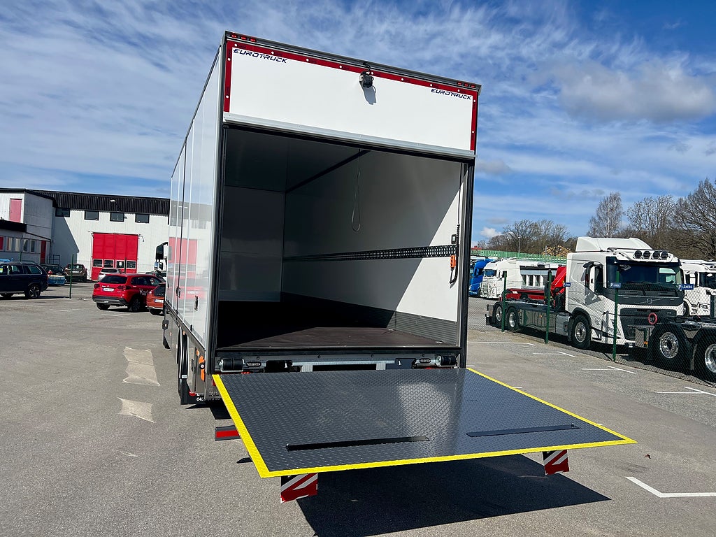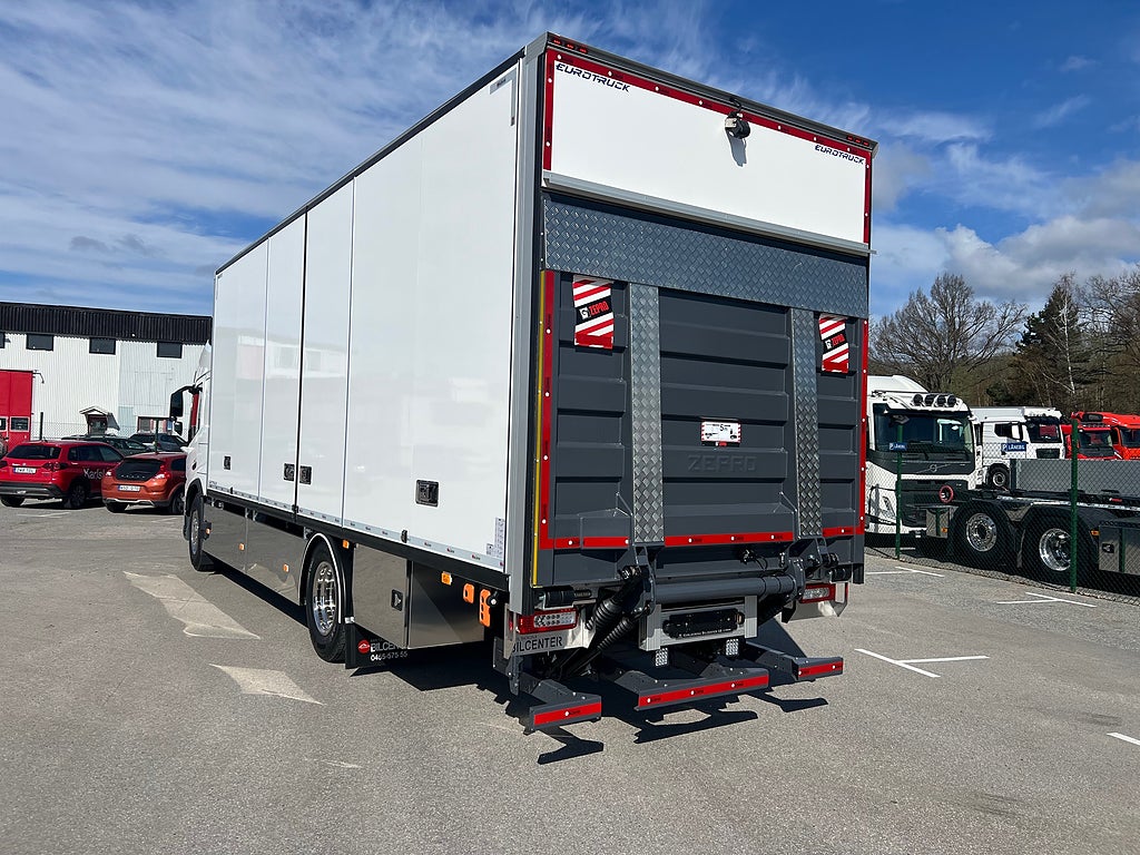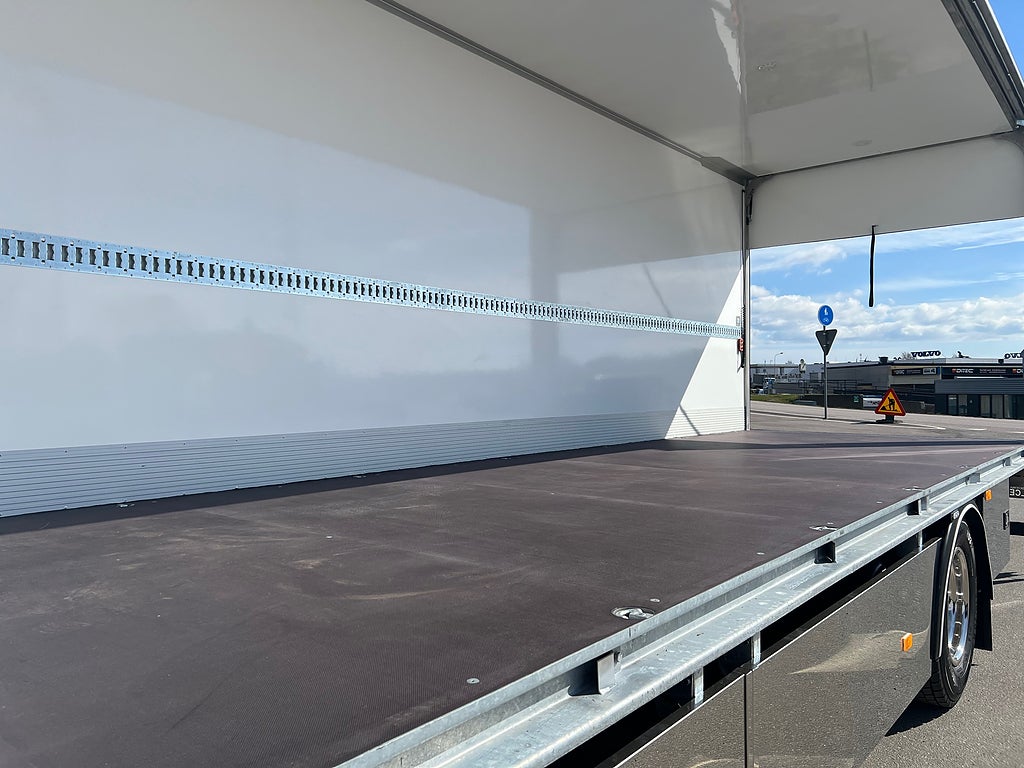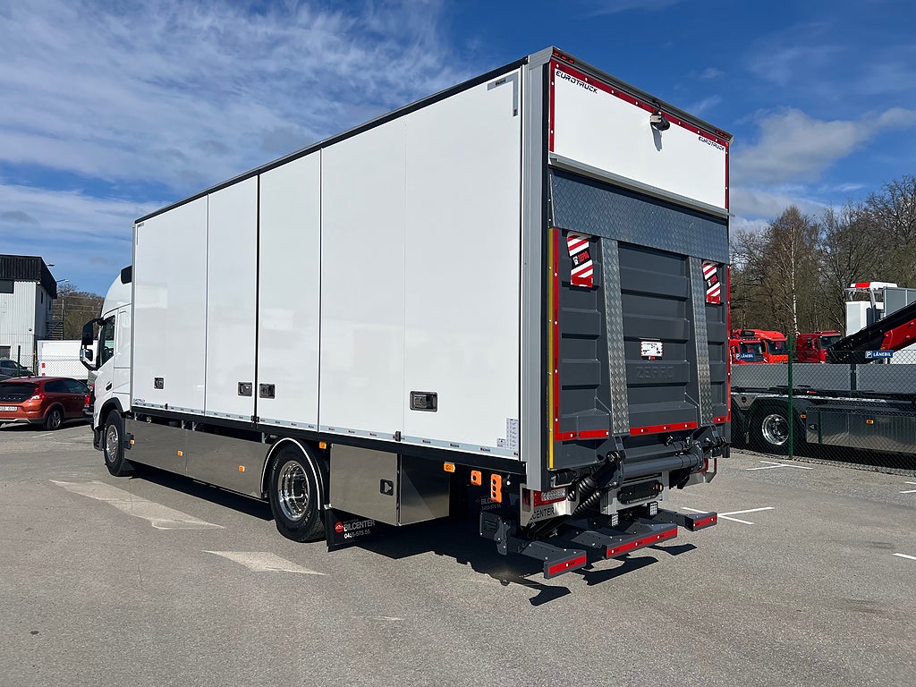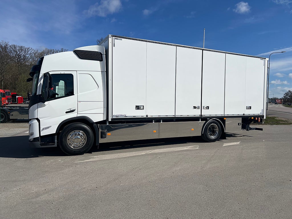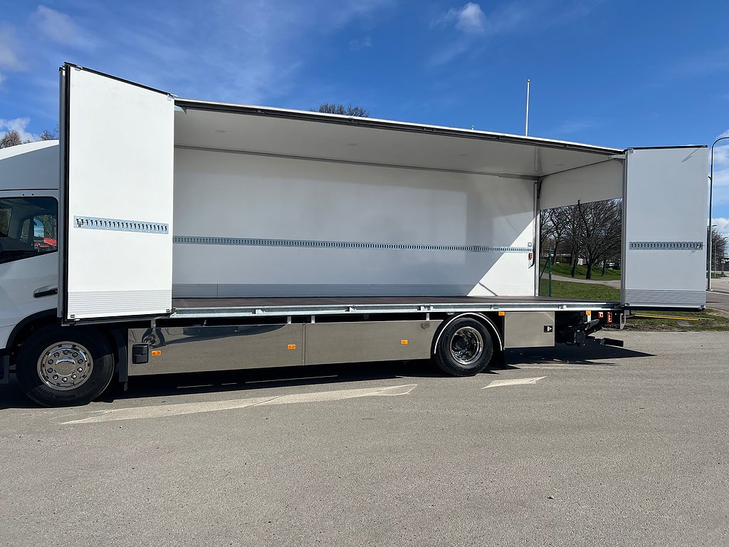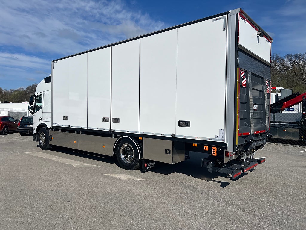 Hög sovhytt FM, Mediapaket med Dynafleet och sidoskärm, Taklucka i tonat glas & elektrisk öppning, Bränsletank aluminium 415 Liter, tEluppvärmda backspeglar med vidvinkelspeglar inkl. närsiktsspegel och hörnkamera på passagerarsidan, Förarpaket+, Siktpaket+, Topografi-information 5 år förbetalt abonnemang, Volvo Connect Säkerhet 6 mån förbetalt, Farthållare med ECO-roll och I-cruise, Assistansuppkoppling VAS (Volvo Action Service) 5 års fri uppkoppling, Uppmärksamhetshjälp, Körfältsassistans, Varningssystem sidokollision båda sidor, Ljudpaket hög nivå, I-See med Information om topografi via karta GPS och centralt sparad data, Däcktrycksövervakning TPMS, Armstöd på båda sidor av förarstol, Belysning i ljusskylt, Förarstol komfort, Hytt och motorvärmare, Automatisk luftkonditionering med sensorer för temp sol imma luftkvalité och kolfilter, TCS, Blixtljus / Varningsljus fram bak & sida, Distributionsskåp med öppningsbar sida, Skåpets invändiga höjd: 262 Cm & längd: 785 Cm, 18 Pall platser, 18 Pallars, 18 PPL, Sidoväggar i 40 mm sandwich, Framstam i 73 mm sandwich samt förstärkt med plywood, Tak av 80 mm sandwich, 38 mm liftlucka, Helt öppningsbar sida i 40 mm sandwich, Avställningsplåt för laststöttor, 4 Stycken inbyggda LED lampor i taket, Infällda lastlåsskenor i skåpets sidor 1000 mm från golvet, Zepro Z-Lift 2000 Kg, Bur/Rullstop i liftplatta samt gul varningsmarkering, Manöverdon Z-Lift båda sidor, Rostfria Sidor, Hjulbas 5600 mm, Tjänstevikt: 10 350 Kg, Tillåten lastvikt: 7650 Kg, Skåp bil Skåpbil Fjärrbil Fjärr distributionsbil distribution, Välbyggd bil med mycket utrustning, Finns hemma för omgående leverans, För mer info ring säljare Andreas Tel. 0705-494044