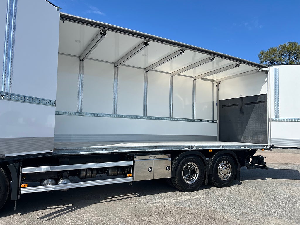 Hög sovhytt FM, Mediapaket med Dynafleet och sidoskärm, Taklucka tonat glas, Eluppvärmda backspeglar med vidvinkelspeglar inkl. närsiktsspegel och hörnkamera på passagerarsidan, Rostfri takbåge med LED extraljus & varningsljus, Förarpaket, Digital färdskrivare 1-dags med fjärravläsning, Siktpaket+5, Calix batteriladdare BC2420 monterad i batterilådan, Bränslefilter med bränslevärmare, Körfältsassistans, Flexibla läslampor, Assistansuppkoppling med mikrofon VAS (Volvo Action Service), Kollisionsvarningssystem inkl. nödbromssystem, Ljudpaket hög nivå, Batteriindikator för laddnivå, Brandvarnare, Elektronisk startspärr (immobilizer), Oljekylare för växellåda, Förstärkt växellåda, Släpvagnsbroms "Stretch" utökad bromsförmåga, Innerline från motor till ramslut, Stötfångarspoiler, Resårmadrass med spiralfjädrar för över 100 kg, Gardin för framruta och sidorutor, Armstöd båda sidor förar- och passagerarstol, Förarstol komfort, Parkeringsvärmare motor och hytt, Skåpets invändiga mått är Höjd: 280 Cm & Bredd: 250 Cm & Längd: 759 Cm, Bommar / Dubbla lastplan, Öppningsbarsida, ÖBS, Centrallås på skåpet / öppningsbara sidan, Aluminiumgolv i skåpet, 18 Pall plaster, 18 Pallars, 18 PPL, Zepro 2000 Kg Z-Lift, Burrstopp/Rullstopp på liftplatta, Hjulbas 4900 mm, Tjänstevikt: 12 715 Kg, Tillåten Lastvikt: 15 285 Kg, Skåpbil Skåp bil fjärrbil fjärr bil distributionsbil distribution, För mer info ring säljare Andreas 0705-494044