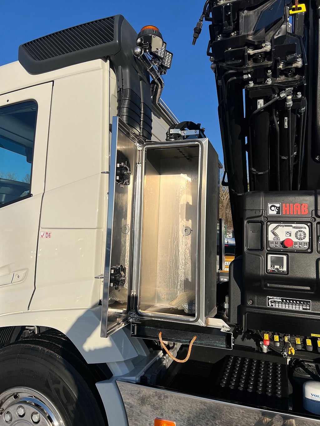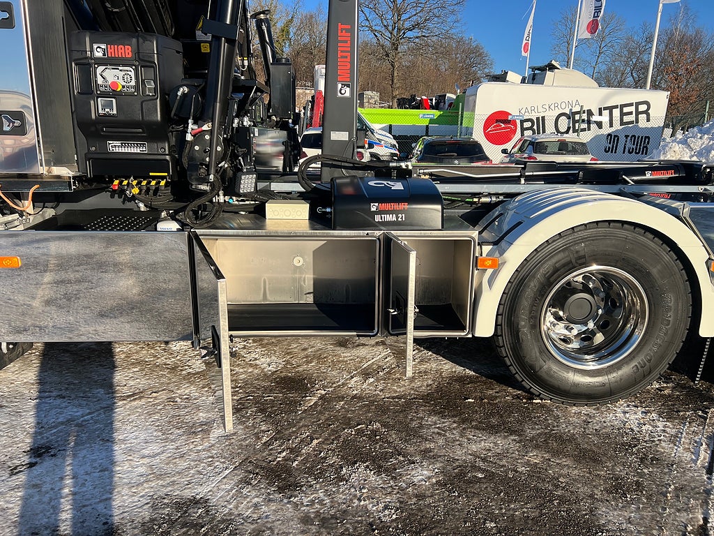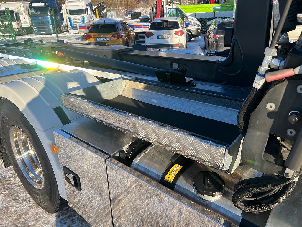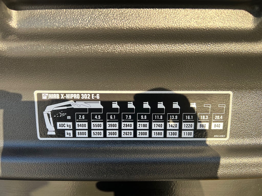 Kamera för oskyddade trafikanter, Daghytt FM, Mediapaket med Dynafleet och sidoskärm, Taklucka i tonat glas & elektrisk öppning, Eluppvärmda backspeglar med vidvinkelspeglar inkl. närsiktsspegel och hörnkamera på passagerarsidan, Förarpaket+, Siktpaket+, Assistansuppkoppling, Farthållare med ECO-roll och I-cruise, Körfältsassistans, Ljudpaket hög nivå, Förstärkt växellåda, Solskyddsskärm i textil (el-manövrerad), Armstöd på båda sidor av förarstol, Förarstol komfort, 2 Stycken backkameror, Rostfri Bakre takbåge med LED arbetsbelysning & varningsljus, Främre Takbåge med LED Extraljus, Nedre rostfritt frontrör, Rostfria sidor, Gott om rostfria verktygslådor, Strölåda, Rostfria Boggielådor, Hiab X-Hipro 302E-6 Kran, 6 Stycken Hydrauliska utskjut, Slang och rörsats, Jibb förberedd, Stödbensbalk Bak, Stödbensplattor inkl hållare i rostfritt, Hiab Multilift Ultima 21SL52 Lastväxlare, Fast monterat PLC Styrdon till lastväxlare, Friktionsminskning, Automatsekvens, Snabbkörning, Snabbtippning, Varningssummer utvändig, Spridarlämsöppnare, Styrning av lastväxlare via kranens fjärrstyrning, Hjulbas: 3900 mm, För mer info ring säljare Andreas 0705-494044